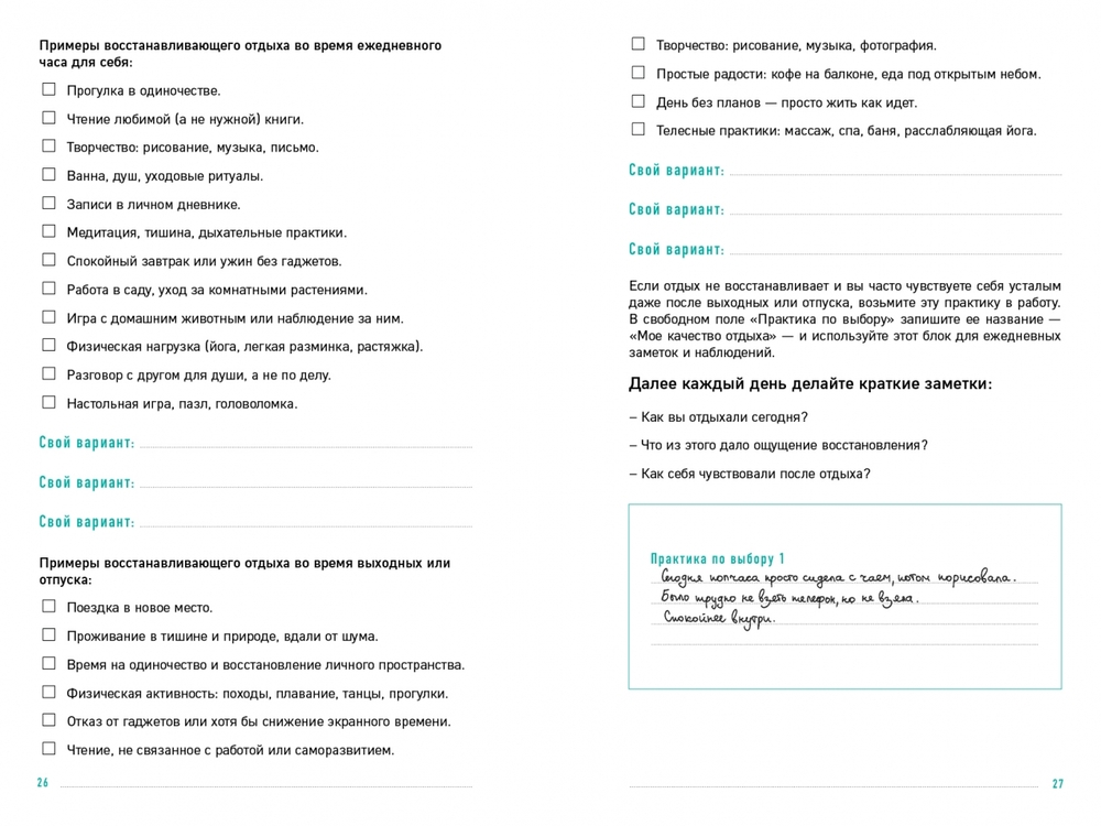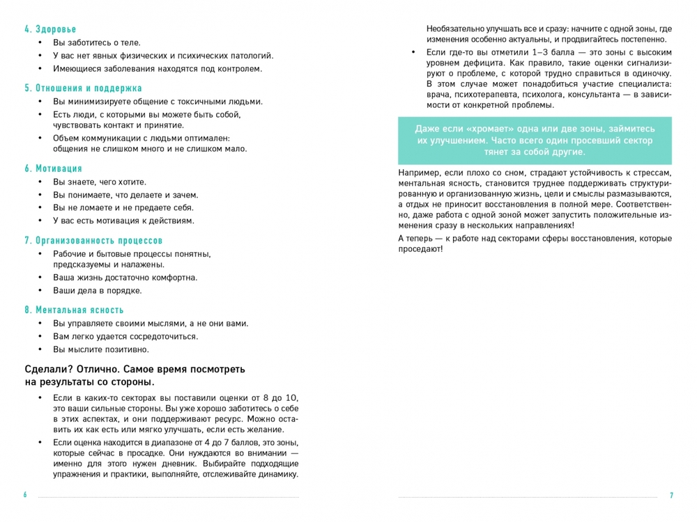 Внутри вы найдёте подробную инструкцию по заполнению, методику, помогающую определить дефициты устойчивости, авторские техники и трекеры для регулярной оценки психоэмоционального состояния. Восстанавливайтесь по восьми ключевым направлениям – от сна и отдыха до отношений и мотивации. Внедряйте полезные практики, не требующие много времени, и добивайтесь стойких позитивных изменений.