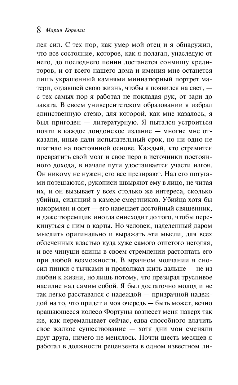 Выымышленный рассказ о жизни Вараввы, известного преступника, освобождённого по воле народа вместо Иисуса Христа во время суда у Понтия Пилата. Мария Корелли через образ Вараввы раскрывает духовное преображение грешной души, которая, соприкоснувшись с Божественным, приходит к раскаянию, внутреннему очищению и возрождению. Роман призывает задуматься о природе греха, прощения и о вечных ценностях, подчёркивая актуальность евангельской истории даже спустя тысячу лет. Яркие описания и поэтический язык Корелли создают сюрреалистическую и потустороннюю атмосферу.