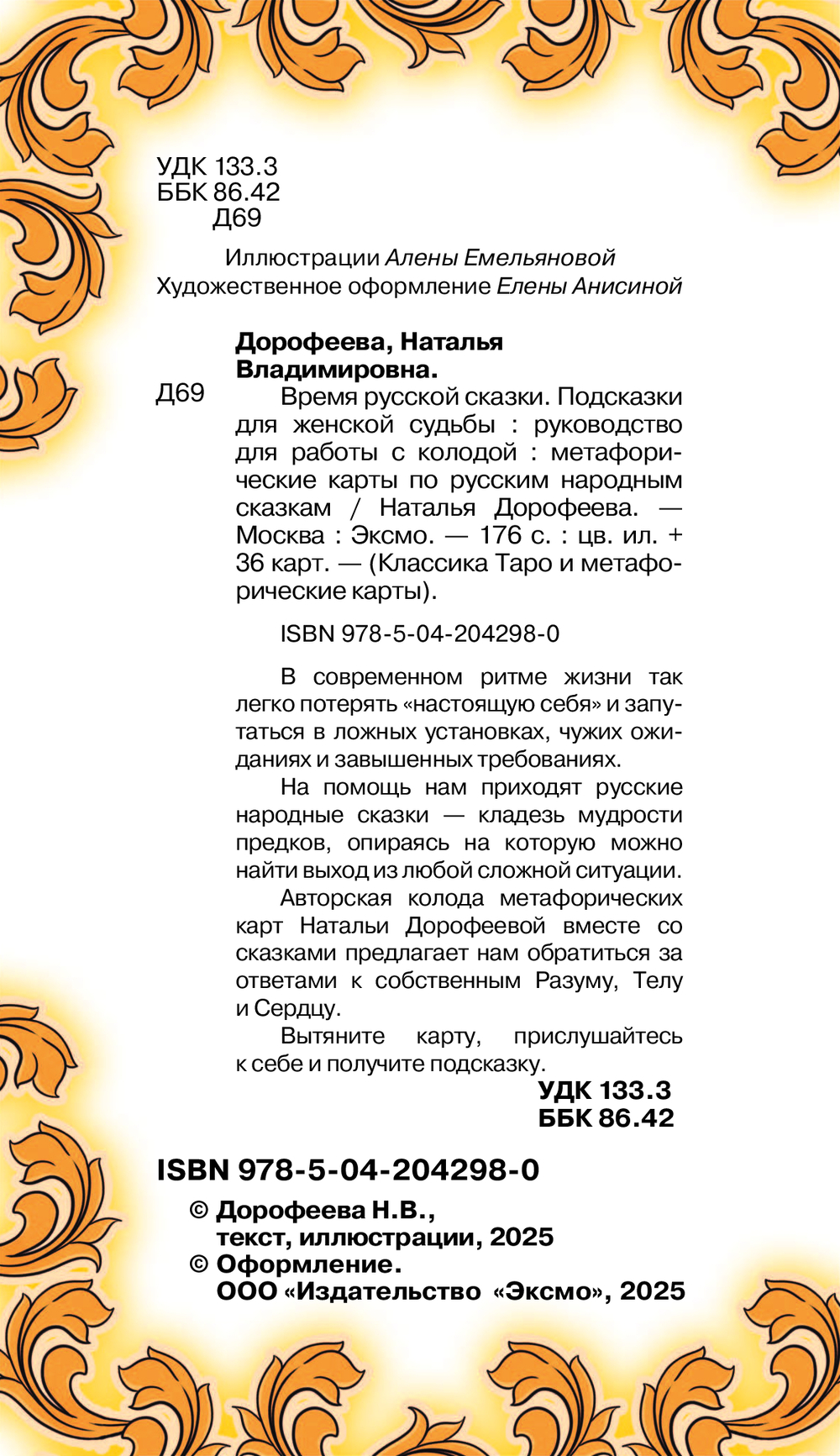 Авторская колода метафорических карт Натальи Дорофеевой вместе со сказками предлагает нам обратиться за ответами к собственным Разуму, Телу и Сердцу.