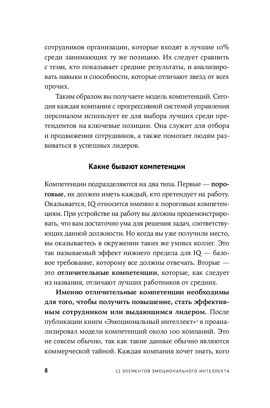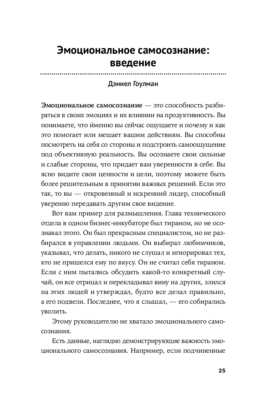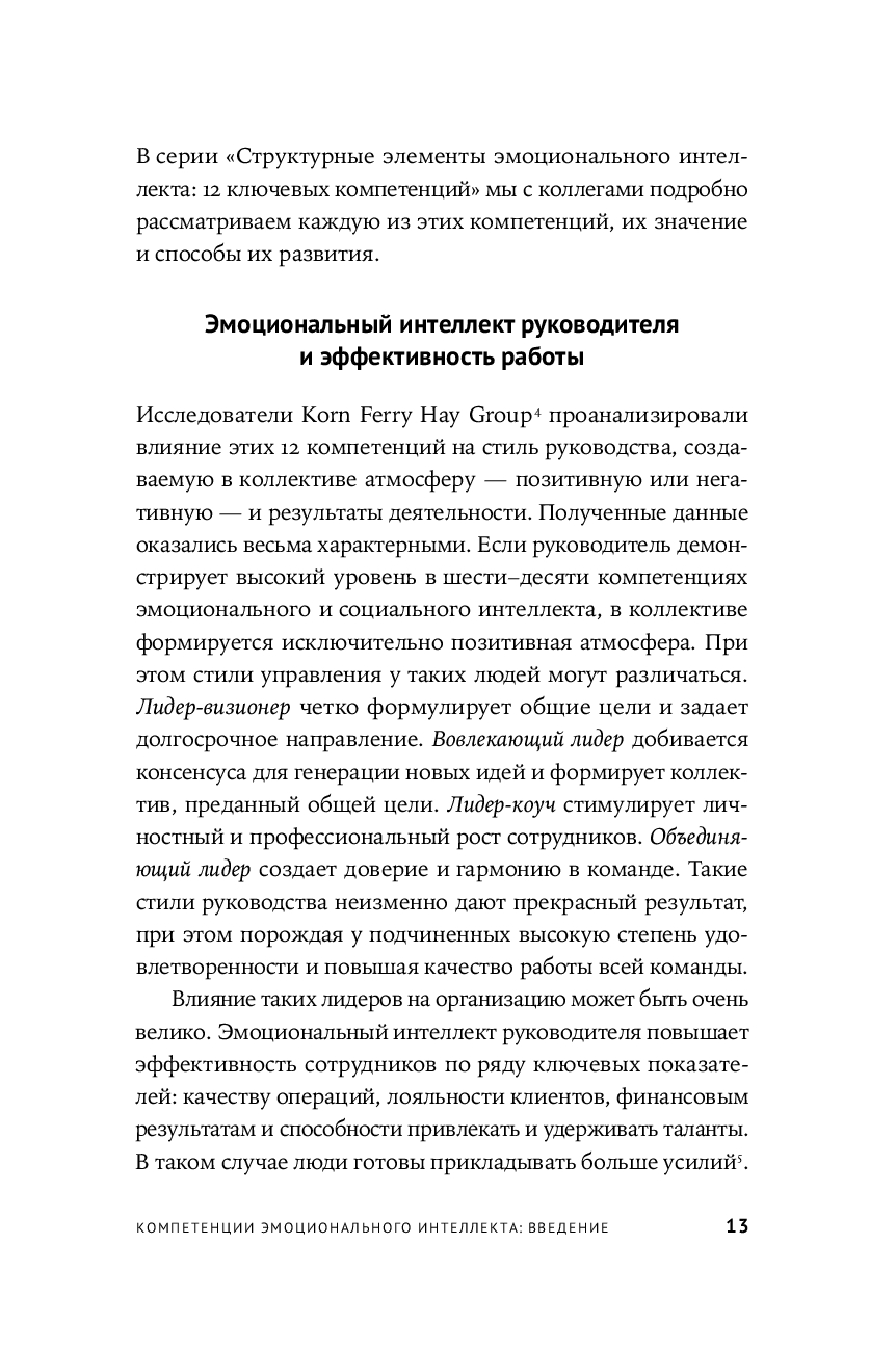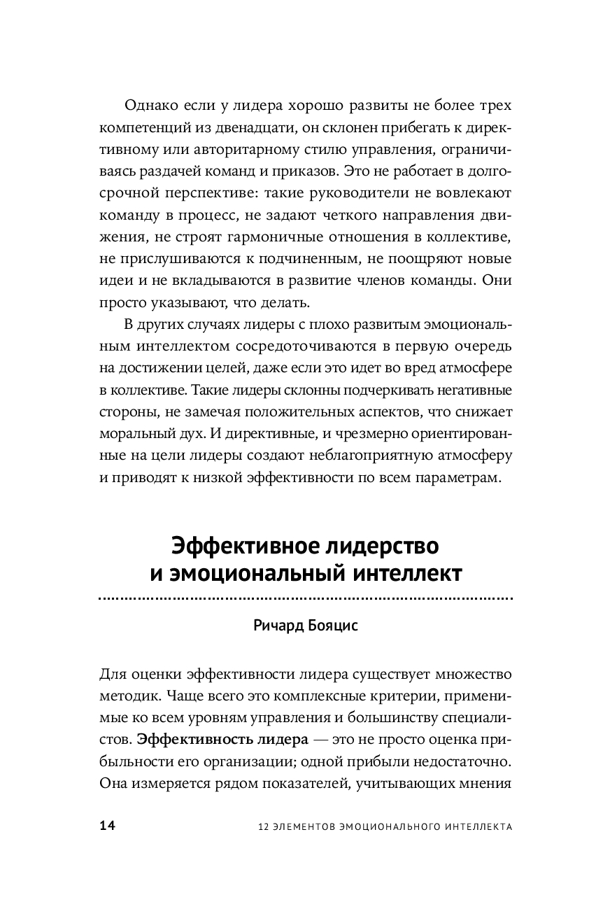 Каждому успешному человеку необходимо уметь понимать и использовать эмоции, чтобы влиять на людей и управлять ими. В этой книге легендарный психолог Дэниел Гоулман – двукратный номинант на Пулитцеровскую премию, автор бестселлеров и основоположник теории эмоционального интеллекта – вместе со своими коллегами объясняет, как эмоциональный интеллект работает на практике. Здесь подробно и доступно рассматриваются 12 компетенций, которые помогут получить повышение, стать эффективным сотрудником или выдающимся лидером, – от самоконтроля и эмпатии до управления конфликтами и умения вдохновлять. Вы узнаете, что это за компетенции, почему они важны, как ими овладеть и эффективно применять на работе и в жизни.