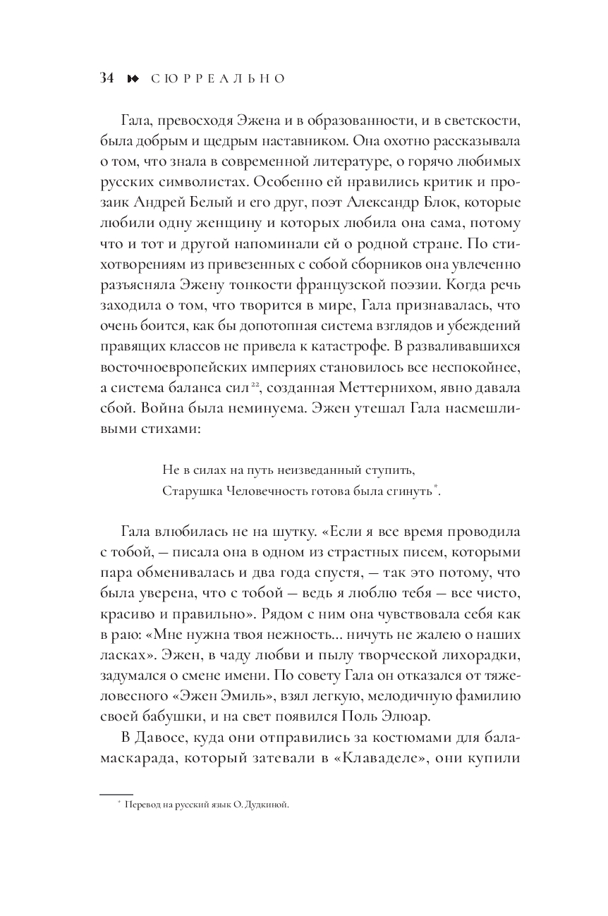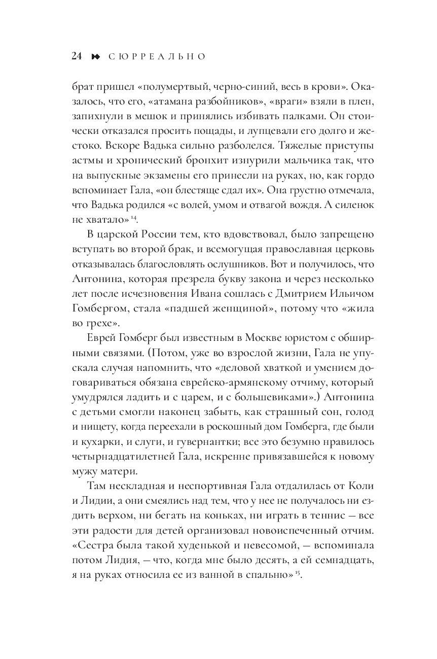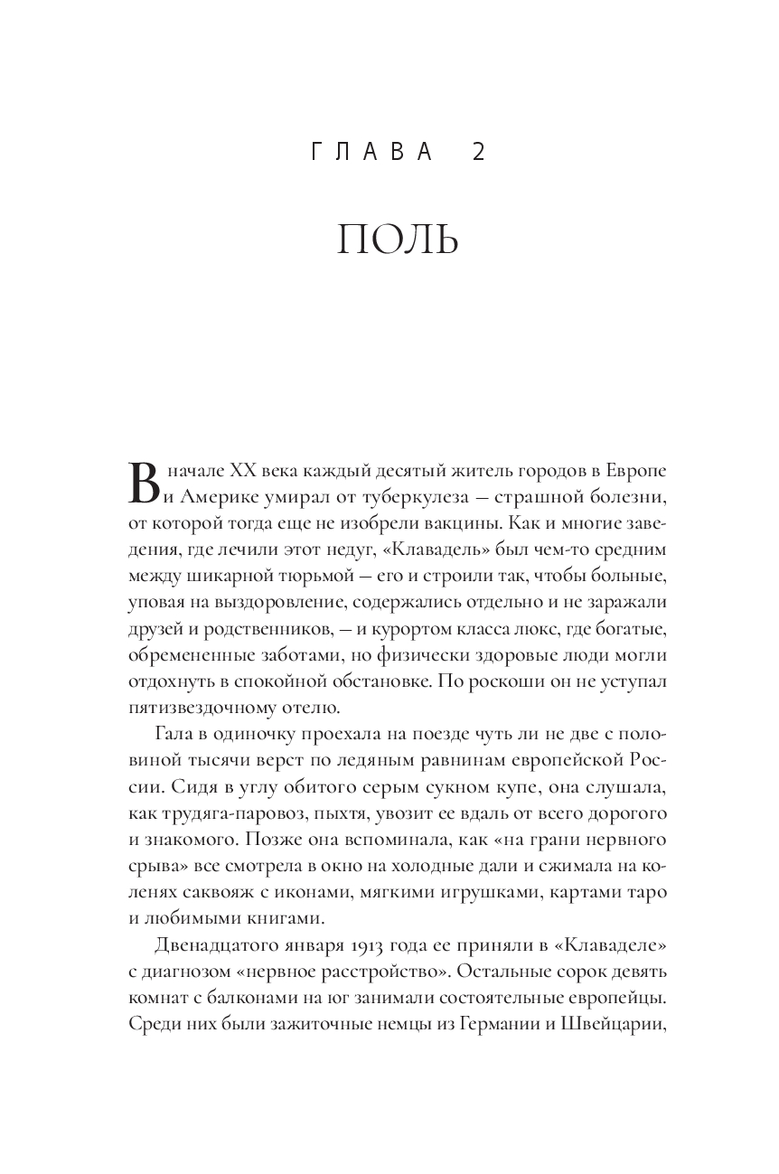 Это биография женщины, которая умела двигать эпоху так же ловко, как и людей вокруг себя. Из Казани и Москвы – в Париж, из Порт-Льигата – в Нью-Йорк и Голливуд. К моменту встречи с молодым Сальвадором Дали Гала уже считалась матерью сюрреализма и умело способствовала его превращению из сообщества посвященных в мировое движение. И делала она это на фоне революций и войн ХХ века – там, где каждый шаг стоил дорого, а любая ошибка сразу оказывалась очевидной.