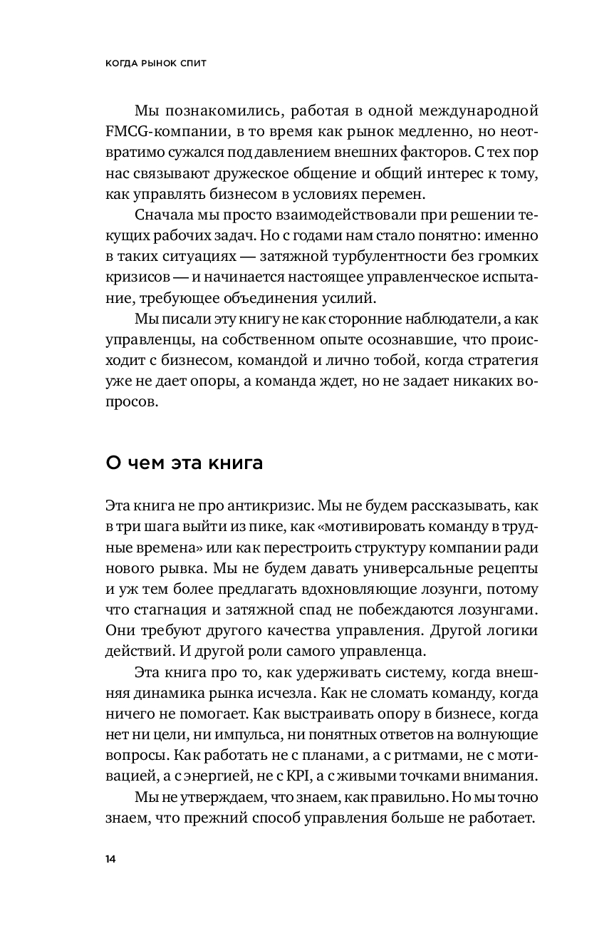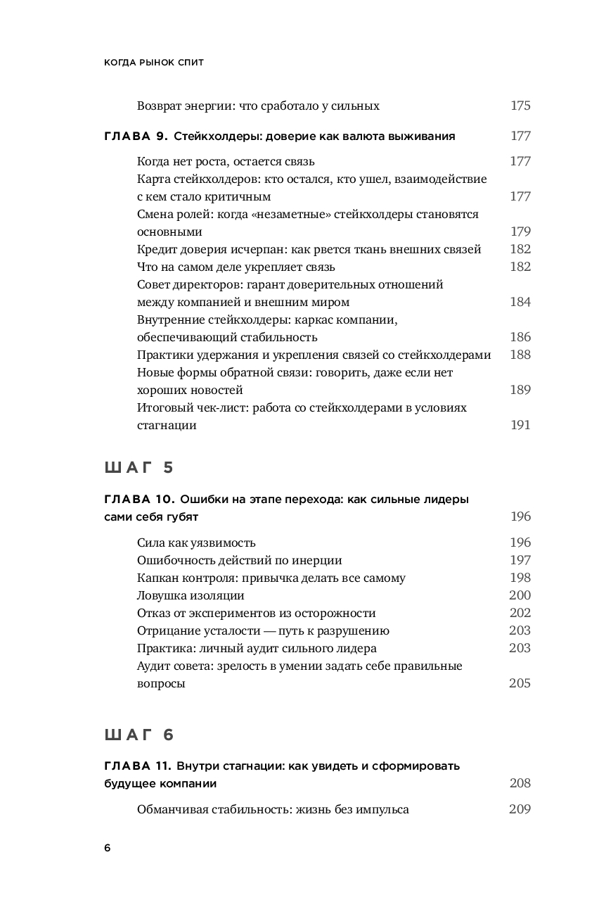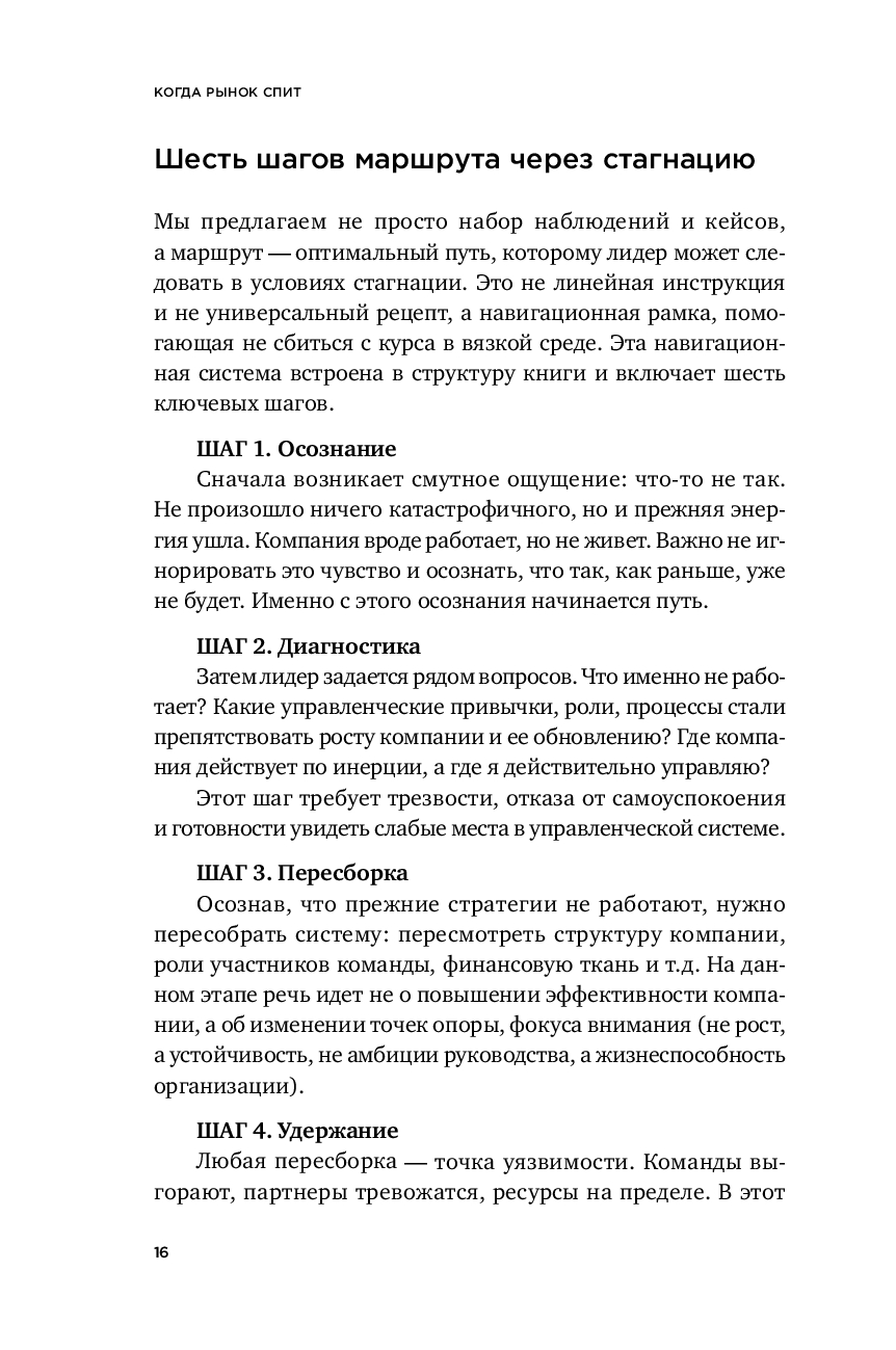 Прочтение книги, вероятно, изменит фокус с достижения амбициозных целей на сохранение жизнеспособности компании. Читатель узнает, почему в стагнации зрелость руководителя важнее харизмы, как усталость команды становится системным сигналом о проблемах и почему доверие превращается в главную валюту выживания. Все рекомендации основаны на реальном опыте управления крупными компаниями в условиях затяжного спада.