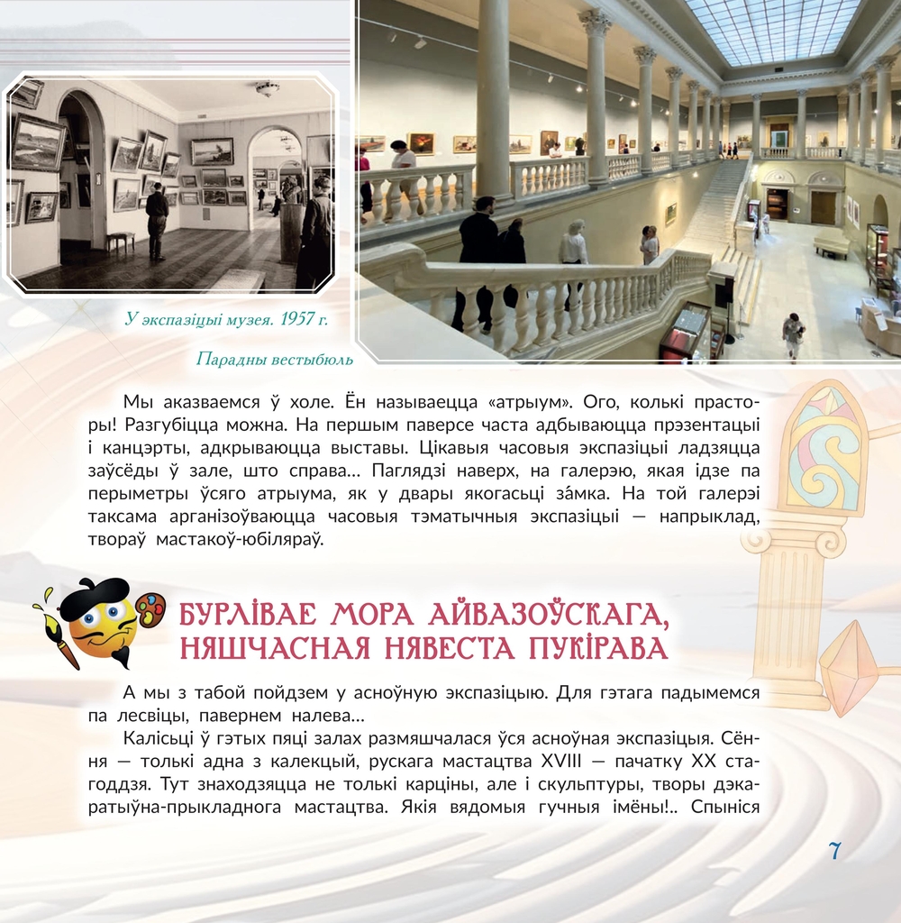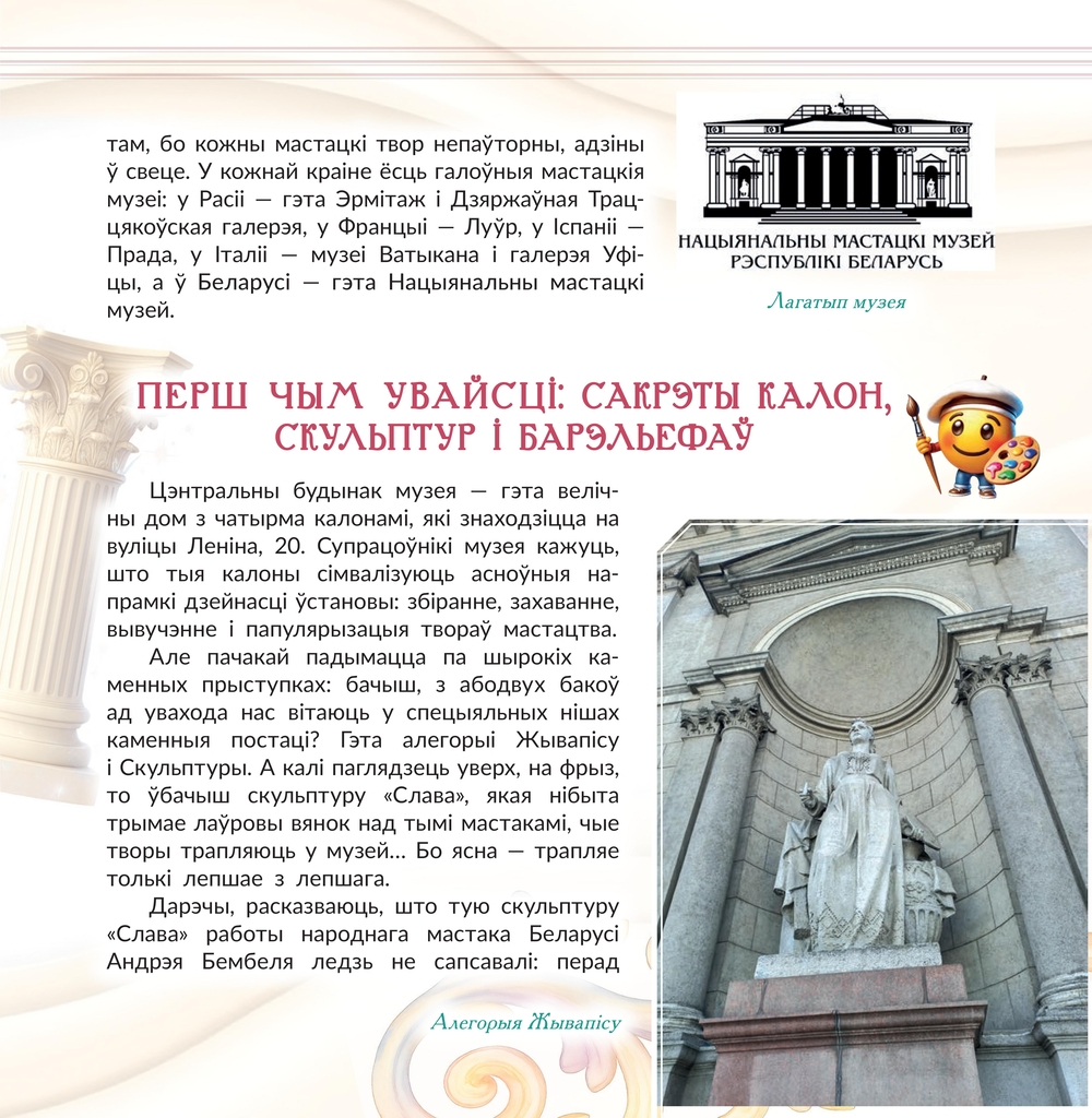 Што цікавага можна ўбачыць у галоўным мастацкім музеі нашай краіны, як правільна сябе паводзіць там падчас экскурсіі, якія імпрэзы варта не прапусціць? Ці бываюць экспанаты, да якіх можна дакрануцца, і ці заўсёды ноччу ў музейных залах пуста і ціха?