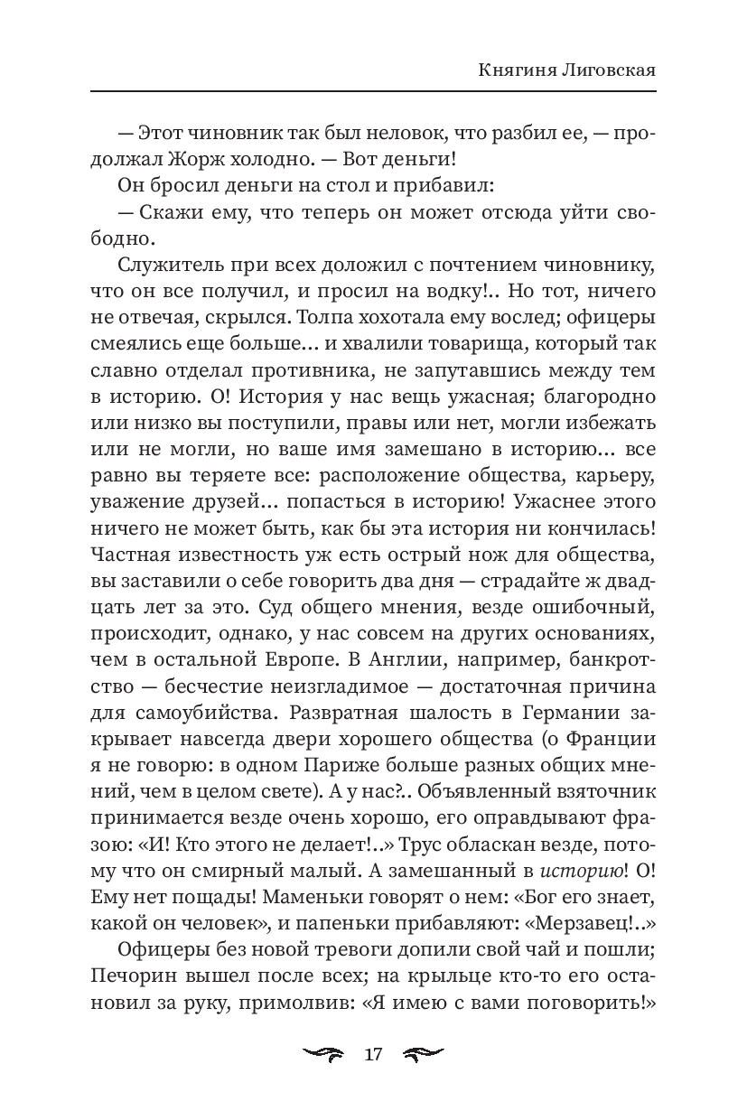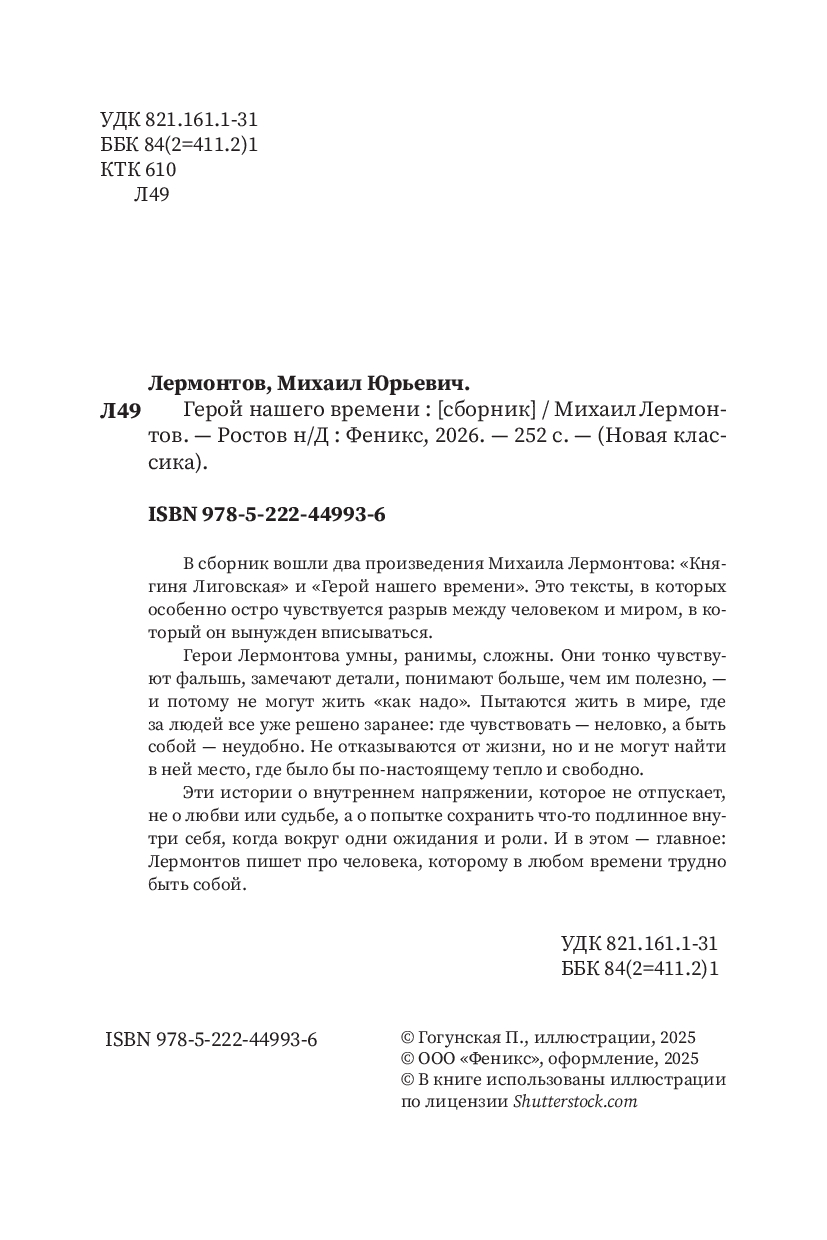 В сборник вошли два произведения Михаила Лермонтова: "Княгиня Лиговская" и "Герой нашего времени". Это тексты, в которых особенно остро чувствуется разрыв между человеком и миром, в который он вынужден вписываться.