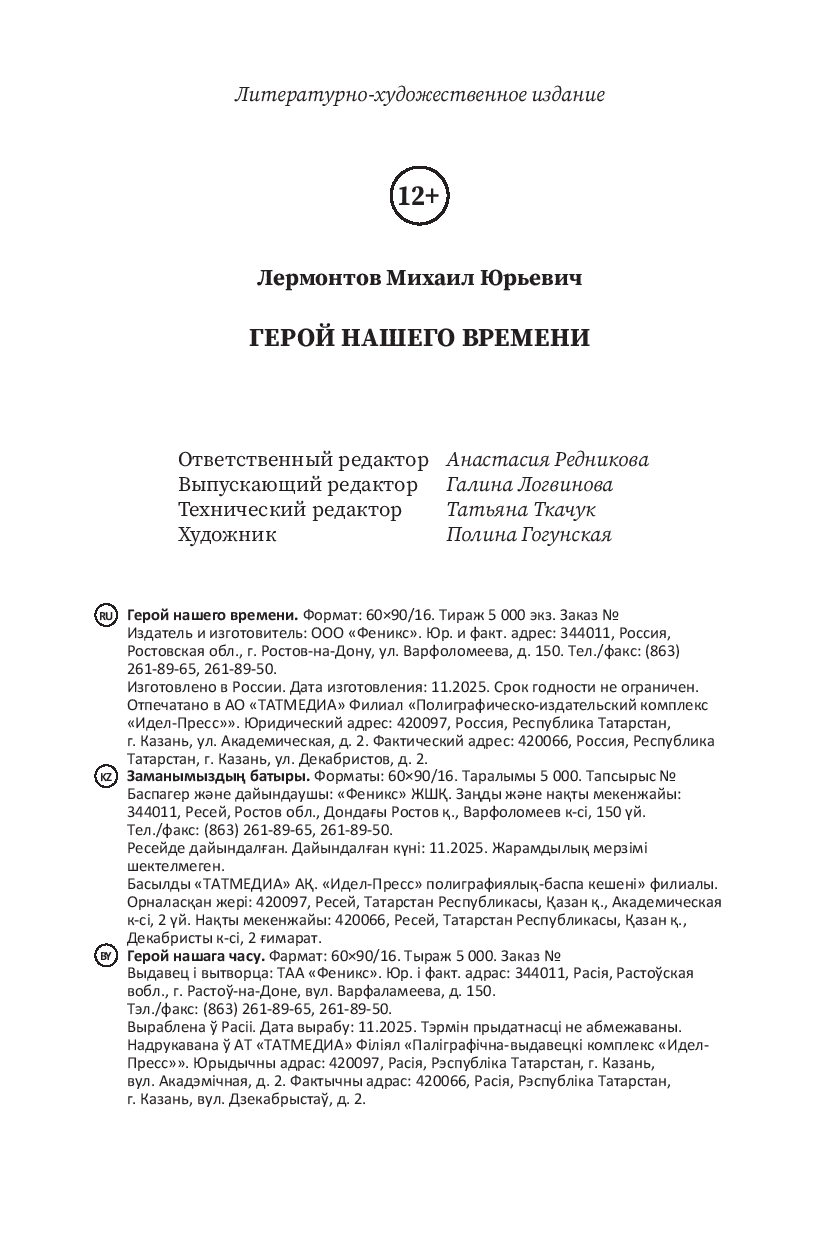 | Изготовитель | ЗАО "Издательство "Феникс". 190000, РФ, г. Санкт-Петербург, пер. Антоненко, 2 |