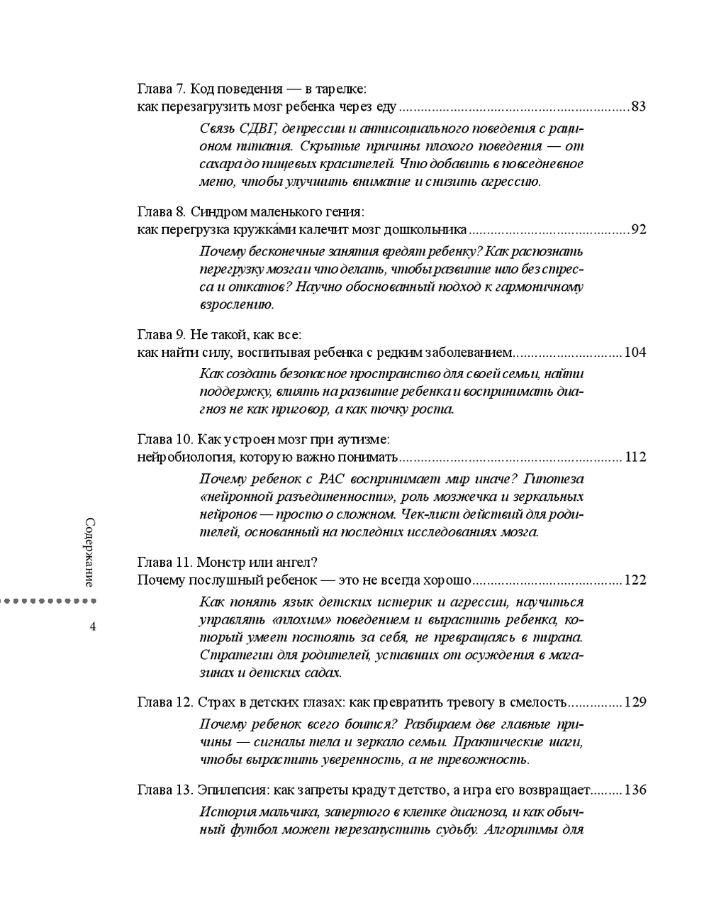Книга предназначена для родителей детей с неуспеваемостью, "плохим" поведением, низкой самооценкой, а также для родителей детей с различными заболеваниями (например, РАС, эпилепсия, СДВГ). Книга будет полезна психологам, нейрореабилитологам, воспитателям ДОУ, учителям.