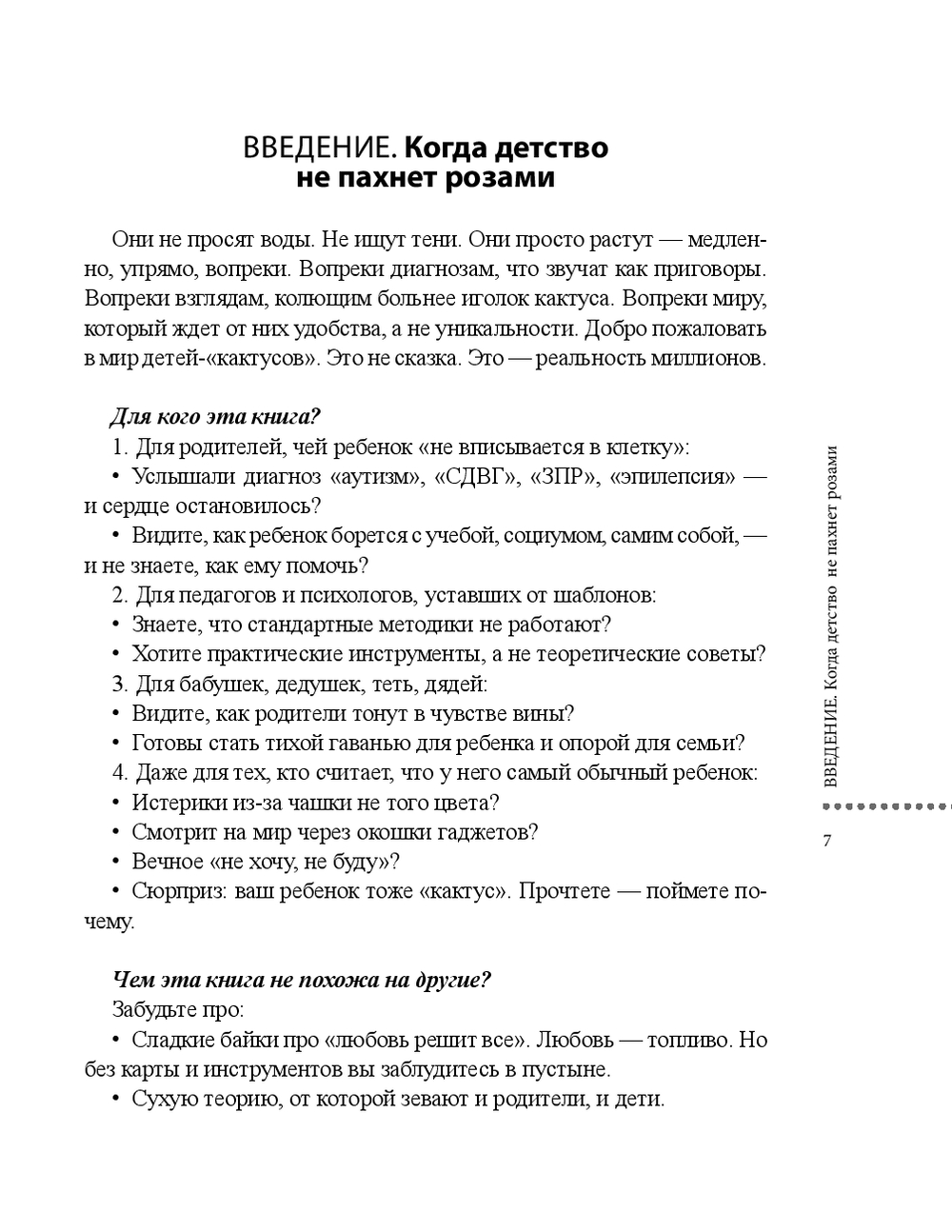 Книга расскажет вам, как общаться, воспитывать да и просто любить "колючего" ребенка, рассматривая различные варианты "проблемностей" – от легкой формы РАС и задержки психического развития до трудностей, с которыми сталкиваются вполне себе нормотипичные дети: неуверенность, переутомление от нагрузки в школе, неуспеваемость.