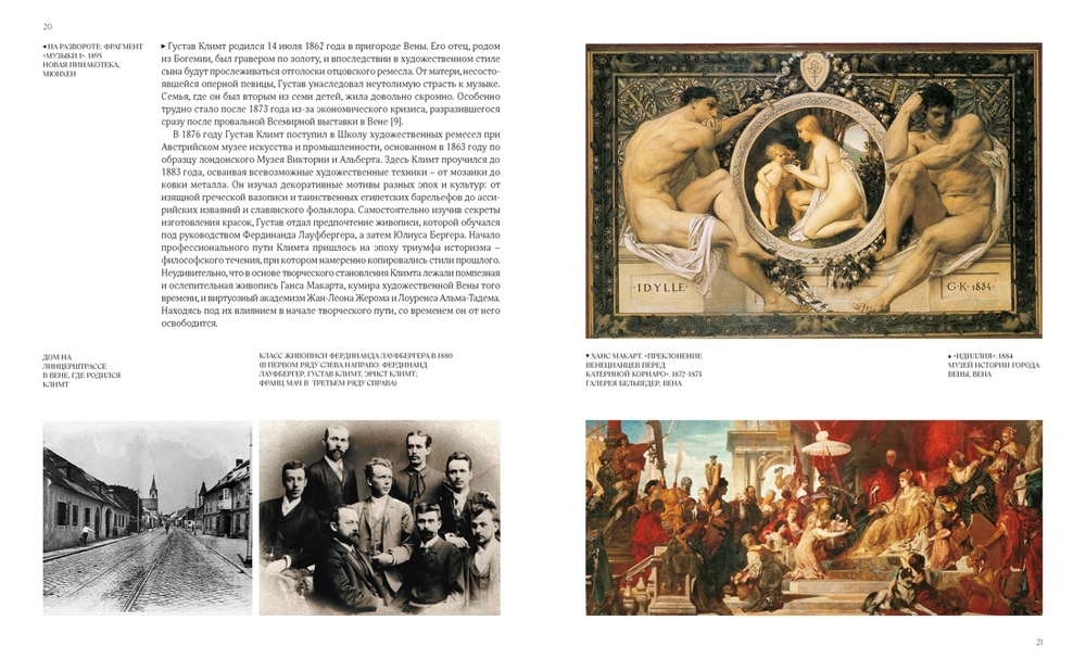 Рассказывая о жизни и творчестве Климта, автор показывает и историю европейской художественной мысли того времени и то как, благодаря Климту и художникам, последовавшим за ним, изменился облик Европы, начиная с Вены, а после нее и всего мира.
