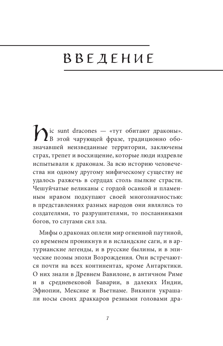 Hic sunt dracones – "тут обитают драконы". В этой чарующей фразе, традиционно обозначавшей неизведанные территории, заключены страх, трепет и восхищение, которые люди издревле испытывали перед драконами. Мифы и легенды об этих прекрасных и опасных существах встречаются на всех континентах, кроме Антарктиды. Викинги украшали носы своих драккаров резными головами драконов, ацтекские жрецы преподносили великому богу Пернатому змею пищу и благовония, а австралийские аборигены славили сотворившего мир Радужного змея с помощью песен и наскальных рисунков.