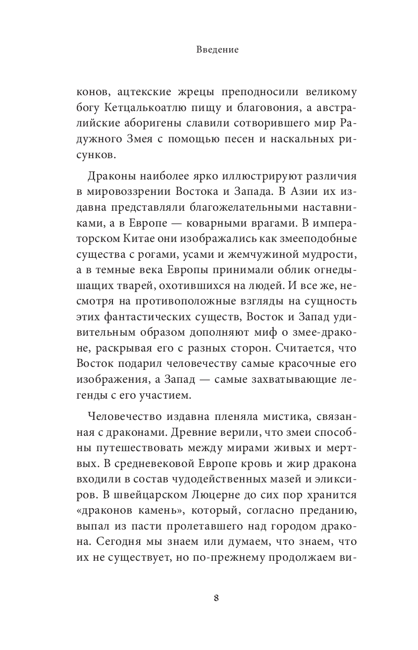 Эта книга приглашает отправиться в большое культурное приключение по следам драконов. На пути вам встретятся змеи, накеры, линдвормы, василиски, виверны и странные монстры, описанные античными авторами и европейскими путешественниками, а также герои локальных легенд: лернейская гидра и горгона Медуза, Змей Горыныч и Фафнир, демоница Мелюзина, потомком которой считал себя Ричард Львиное Сердце, и змееподобная китайская богиня Нюйва, мать и защитница всего человечества, японский морской бог Рюдзин и вестник Рагнарёка Ёрмунганд.