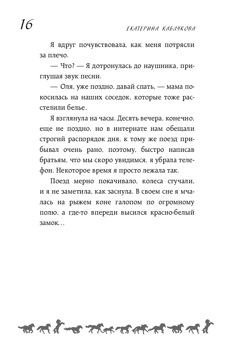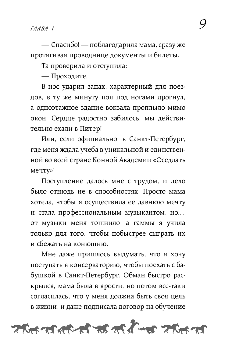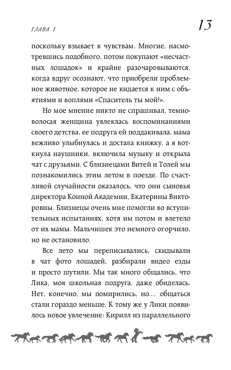 И если кто-то думает, что испытания позади, – для меня они только начинаются. Учиться нелегко, а ведь ещё приходится жить в интернате, без родителей, и, помимо тренировок, ежедневно ухаживать за лошадьми. Всё это непросто, но я обязательно справлюсь! Ведь рядом – мои верные друзья: Витя и Толя. Вместе мы преодолеем все трудности и поймаем капризную удачу за хвост.