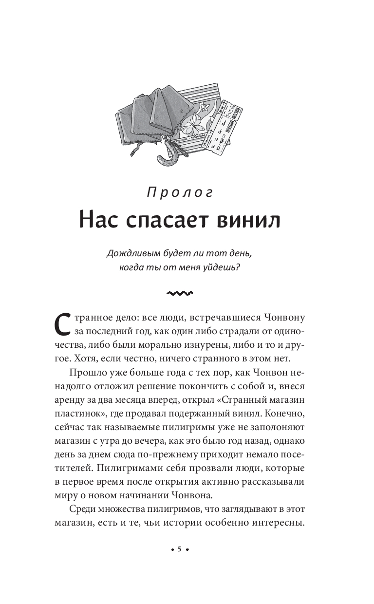Чонвон долгое время страдал от депрессии, не зная, зачем продолжает жить. Открыв свой "Странный магазин пластинок", он надеялся найти хоть какой-то смысл своего существования. Его двери всегда открыты для уставших духом и изнуренных от суматохи будней людей. Для каждого он подберет свою особенную песню, которая поможет пережить самые тягостные дни. Способна ли музыка спасти даже самого отчаявшегося человека?
