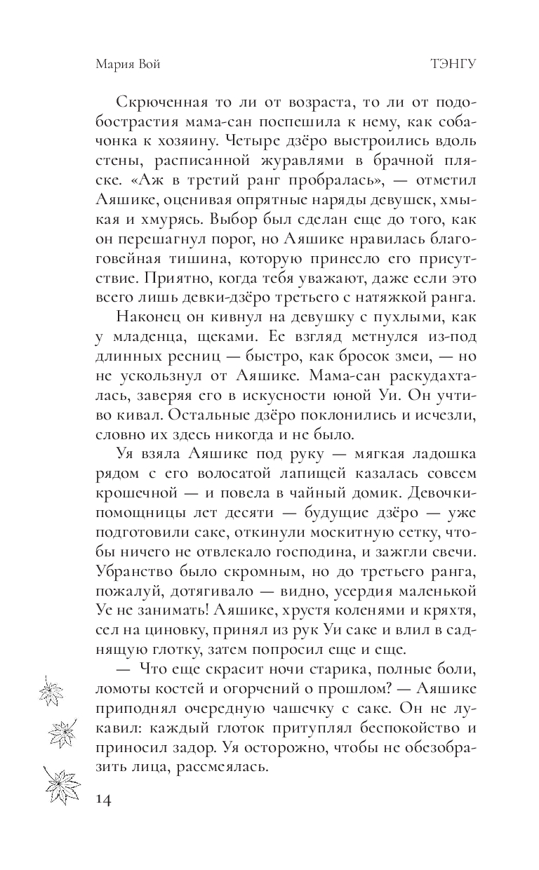 Возможно, что-то подобное случилось и с Аяшике: он не помнит ничего, кроме последних десяти лет. Правда, его это мало волнует: с неудобными вопросами хорошо справляются саке, купальни и развлечения в чайных домиках.