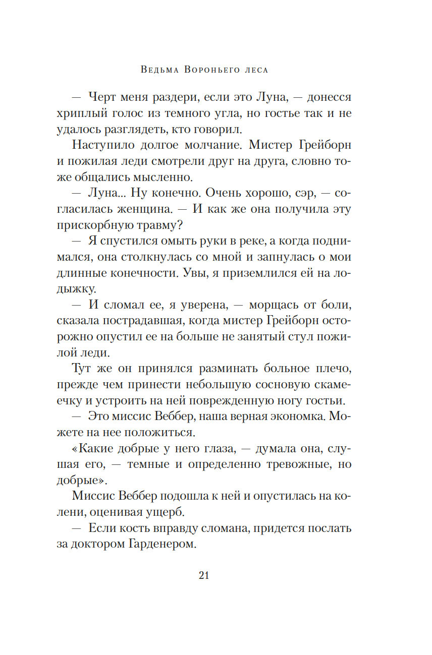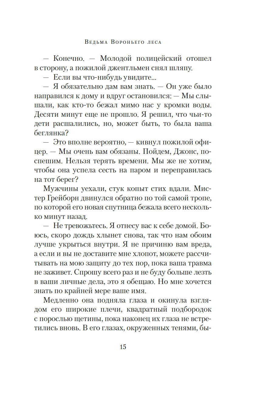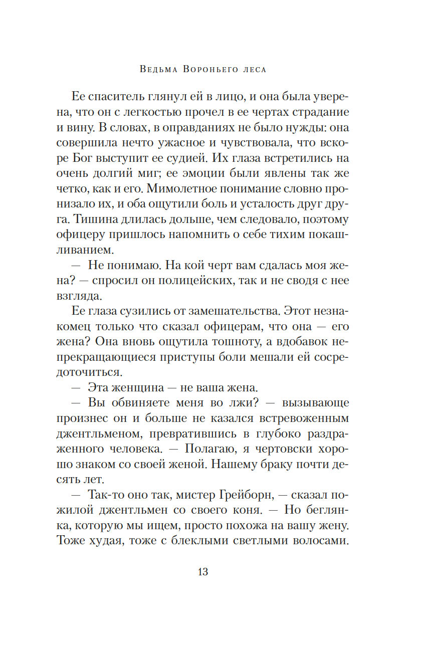 Англия, 1885 год. Женщина в бегах. Ее обвиняют в убийстве, ей грозит виселица. Погоня приближается. Спасение от неминуемой гибели приходит в лице незнакомца, который убеждает местного констебля, что эта женщина не кто иная, как его жена Луна Грейборн. Беглянке, в довершение всех своих бед повредившей ногу, приходится принять условие Грейборна в обмен на крышу над головой. Теперь она должна как можно более убедительно играть роль его супруги-затворницы, которую в округе считают ведьмой. Зловещий дом на краю леса, где гнездятся черные во́роны, полон странных событий и мрачных тайн. Куда исчезла настоящая миссис Грейборн? И впрямь отметины, оставленные ею по всему дому, например перевернутая пентаграмма, наводят на мысли о колдовстве. Самозванку преследует ощущение надвигающейся беды. Действительно ли она избежала смертельной опасности, или ее ждет нечто худшее?..