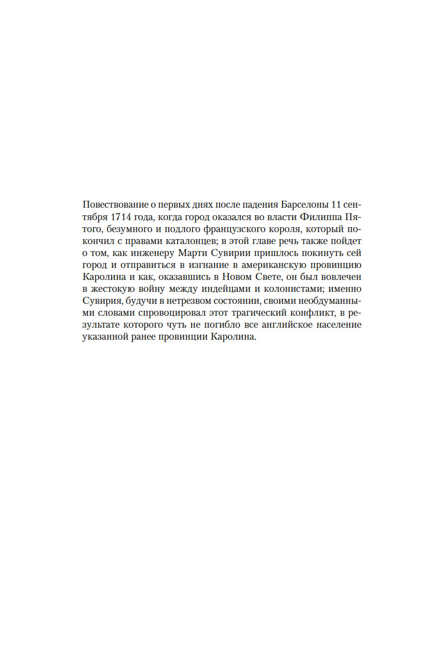 Независимой Каталонии настал конец, Барселона пала, по улицам рыщут солдаты бурбонской армии, участникам обороны города грозит арест. Барселонец Марти Сувирия – совестливый плут, невольный предатель и трусливый герой, последний ученик великого французского теоретика фортификации Себастьена де Вобана, член уникального братства военных инженеров, будущий желчный мемуарист, а пока что раненый солдат, потерявший все, – бежит из Барселоны. Однако места назначения он достигнет не сразу: некоторым людям семь верст не крюк, поэтому путь Сувирии из Каталонии в Вену лежит через Южную Каролину (где он поучаствует в очередной войне, с блеском возьмет город, найдет новую любовь и едва не погибнет), а затем через Францию (где его жизнь обернется еще интереснее). Кроме того, впереди его ждет грандиозное отмщение заклятому врагу и путешествие на край света...