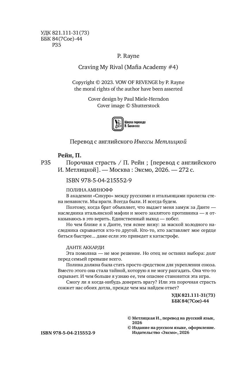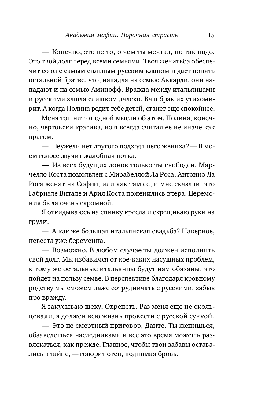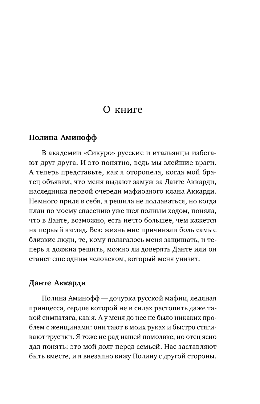 Поэтому, когда брат объявляет, что выдает меня замуж за Данте – наследника итальянской мафии и моего заклятого противника, – я отказываюсь в это верить. Единственный выход – побег.