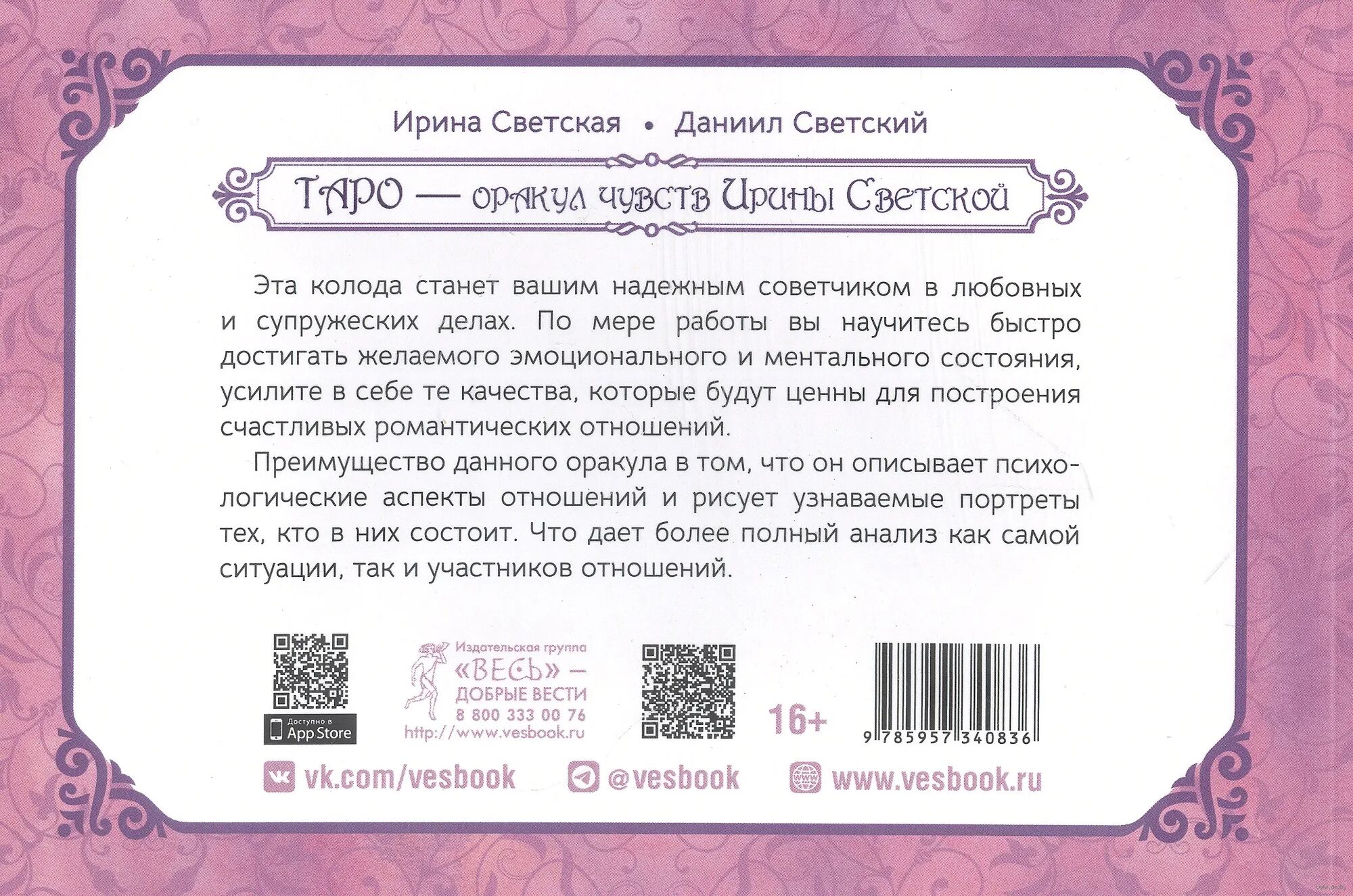 По мере работы вы научитесь быстро достигать желаемого эмоционального и ментального состояния, усилите в себе те качества, которые будут ценны для построения счастливых романтических отношений. Эта колода станет вашим надежным советчиком в любовных и супружеских делах.
