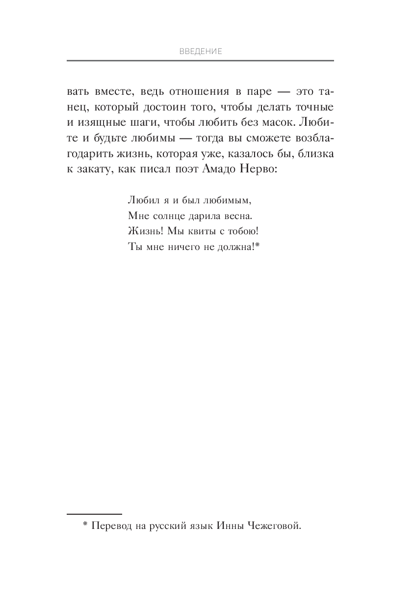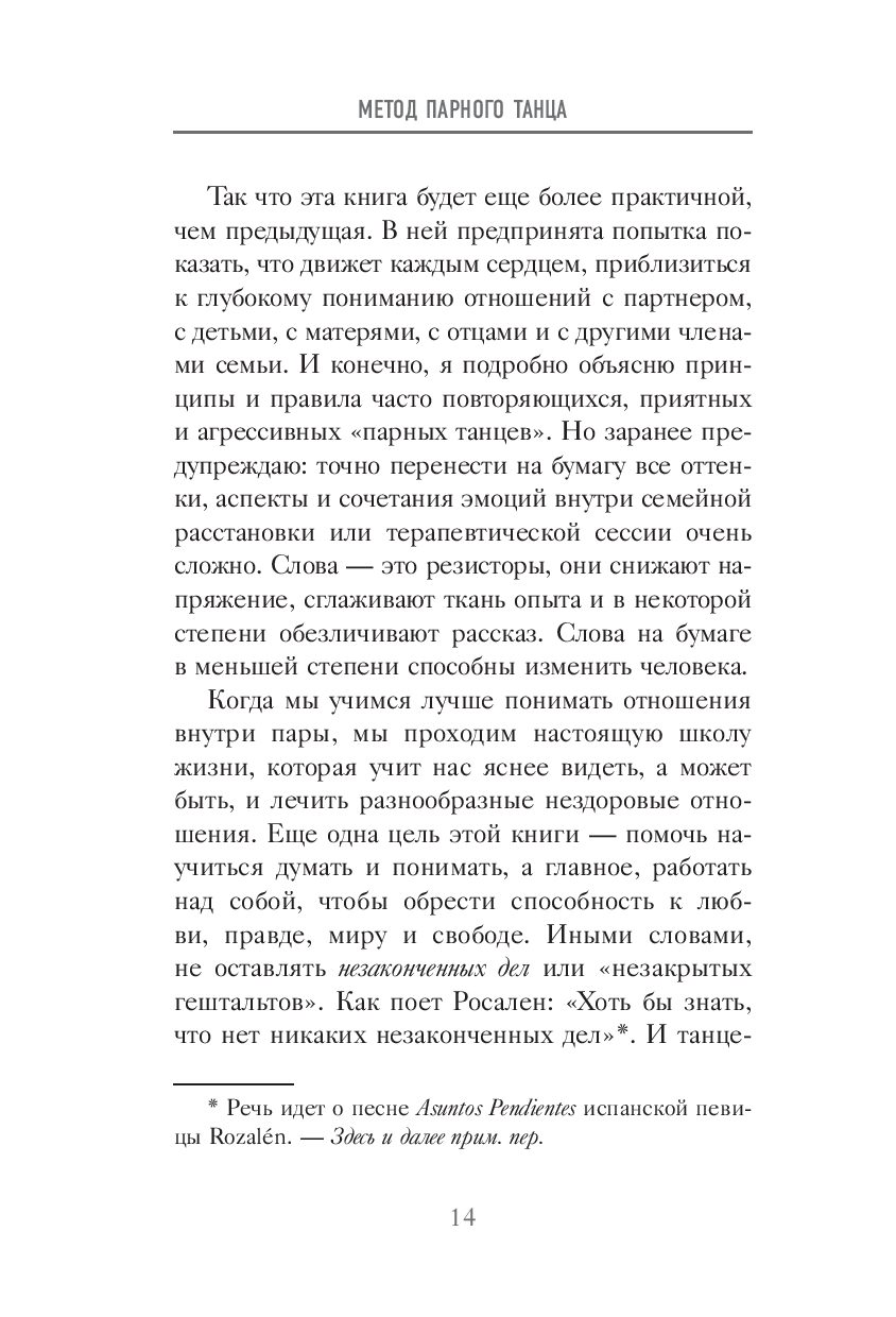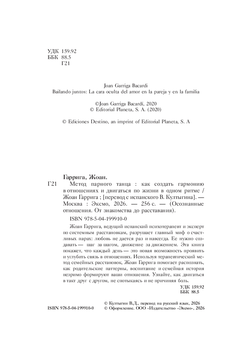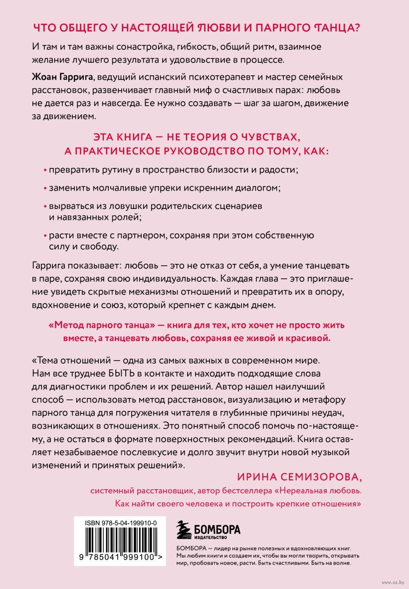 Жоан Гаррига, ведущий испанский психотерапевт и эксперт по системным расстановкам, разрушает главный миф о счастливых парах: любовь не дается раз и навсегда. Ее нужно создавать – шаг за шагом, движение за движением. Эта книга покажет, что каждый день – это новая возможность проявить и углубить связь в отношениях. Используя терапевтический метод семейных расстановок, Жоан Гаррига помогает распознать, как родительские паттерны, воспитание и семейная история незримо формируют ваши отношения. Узнайте, как двигаться в такт друг с другом, не спотыкаясь и не причиняя боль.