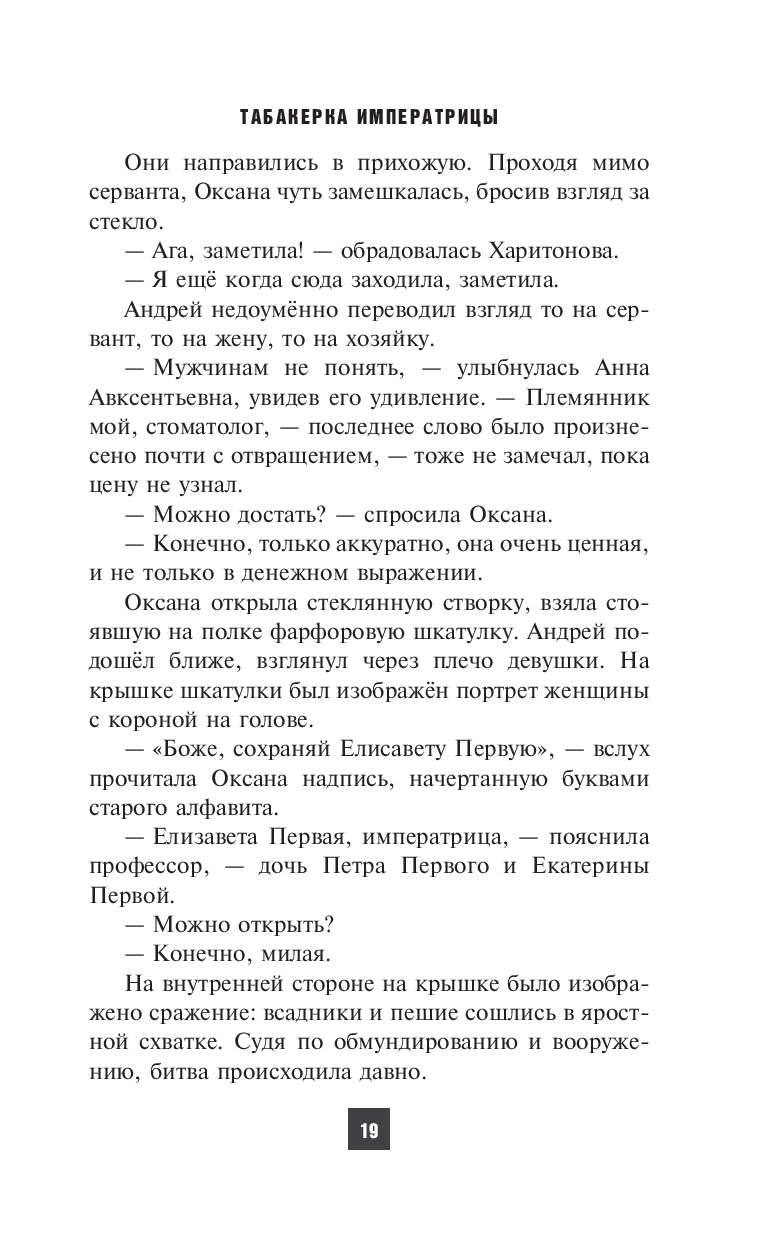 Что скрывает табакерка императрицы и почему за ней так упорно охотится тайная монархическая организация? Зачем в СССР приезжают эмиссары Императорского дома Романовых? Об этом и многом другом вы узнаете прочитав роман Сергея Леонтьева "Табакерка Императрицы".