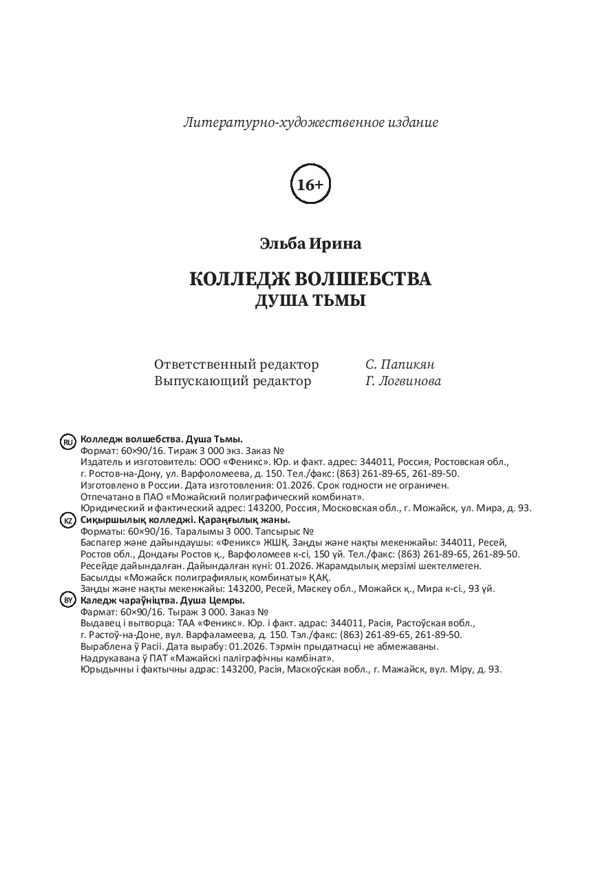 | Изготовитель | ЗАО "Издательство "Феникс". 190000, РФ, г. Санкт-Петербург, пер. Антоненко, 2 |