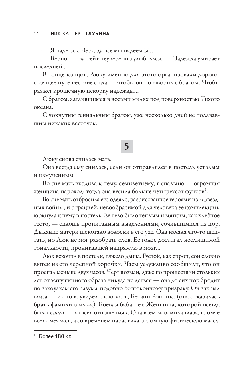 Ник Каттер подарил нам потрясающий сплав глубоководного хоррора и боди-хоррора, права на экранизацию которого уже приобрел стриминговый сервис Amazon Prime Video. "Поразительно жутко" (Клайв Баркер).