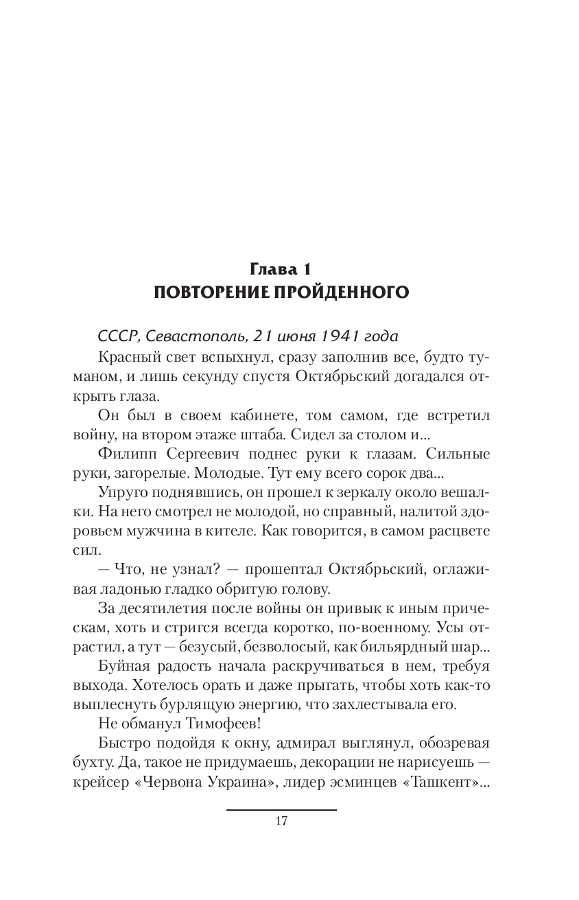 Адмирала Филиппа Октябрьского, командовавшего в войну Черноморским флотом и сдавшего Севастополь, мучает совесть. Но ему дается второй шанс, чтобы вернуться в сорок первый и обменять позор на честь и славу.