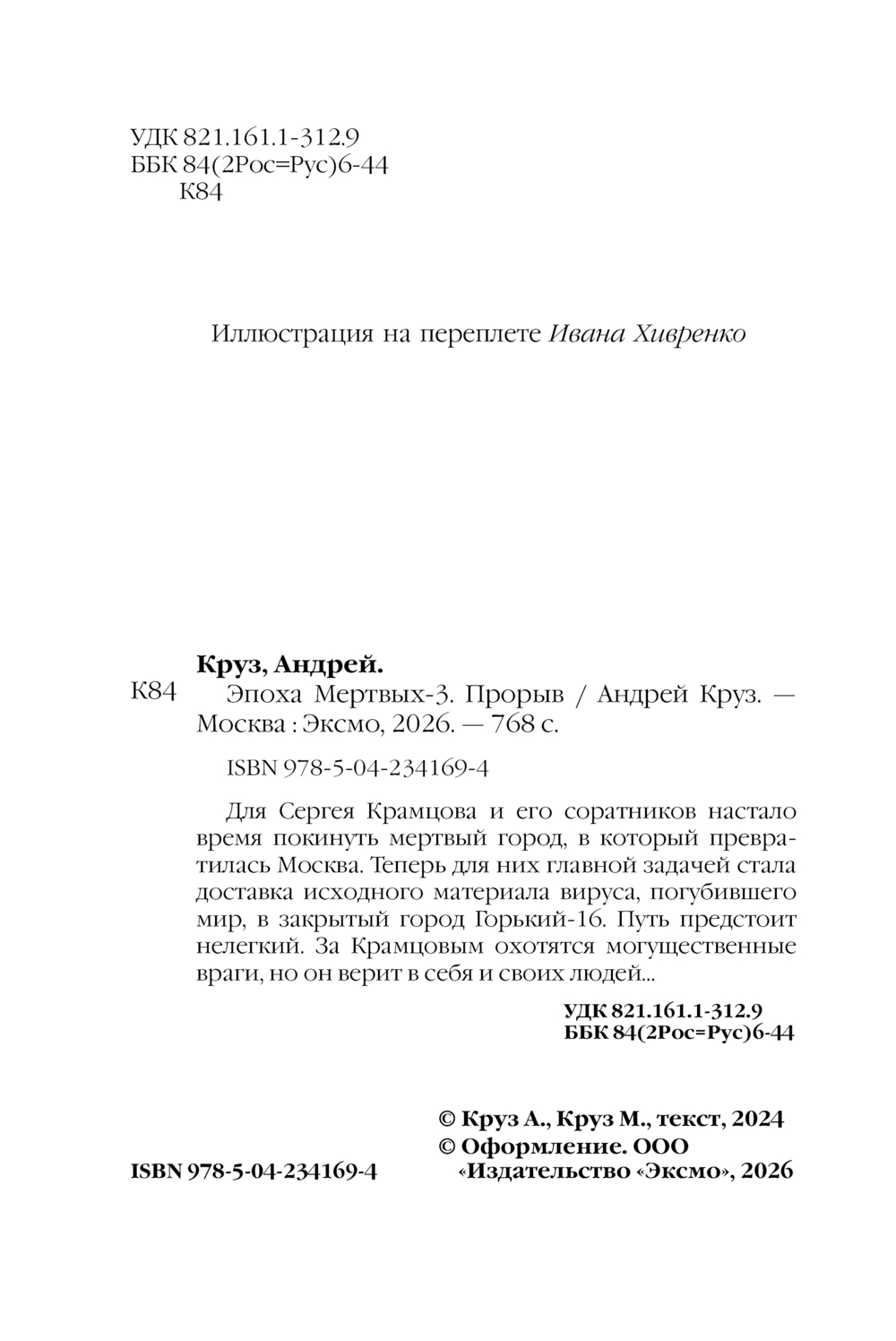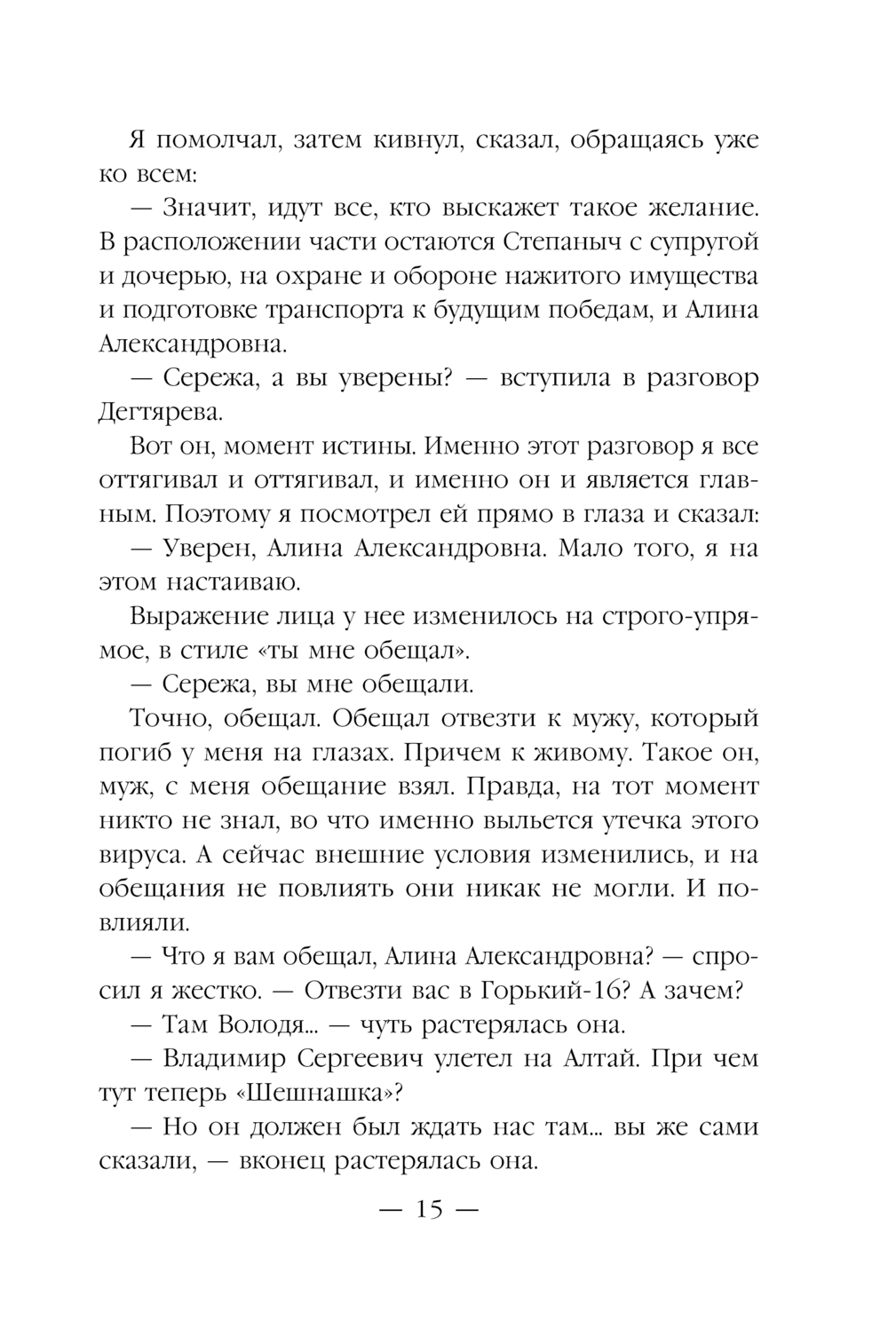 Для Сергея Крамцова и его соратников настало время покинуть мертвый город, в который превратилась Москва. Теперь для них главной задачей стала доставка исходного материала вируса, погубившего мир, в закрытый город Горький-16. Путь предстоит нелегкий. За Крамцовым охотятся могущественные враги, но он верит в себя и своих людей…