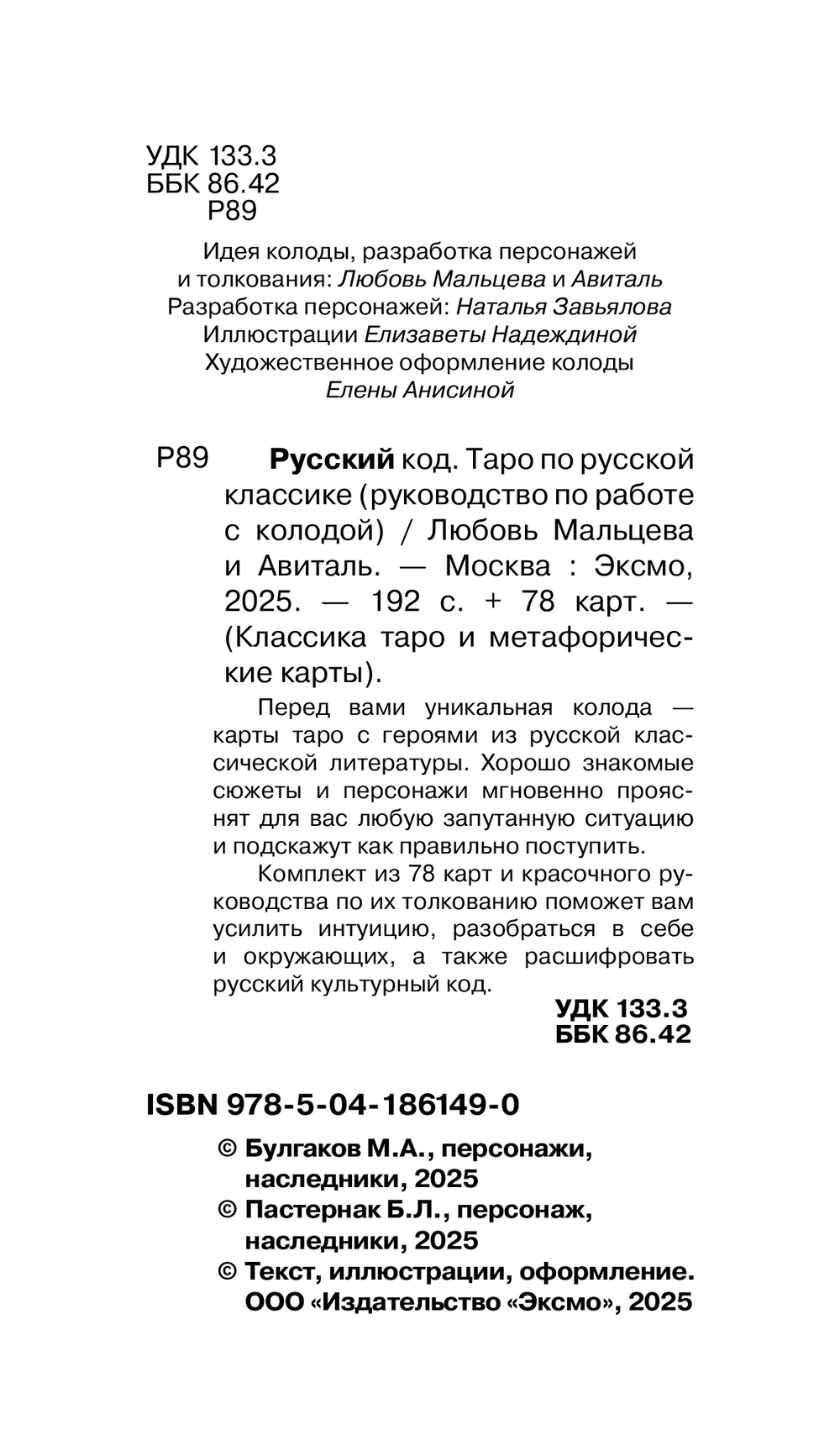 Русский код. Таро по русской классике (78 карт и руководство по работе с колодой в подарочном футляре)
