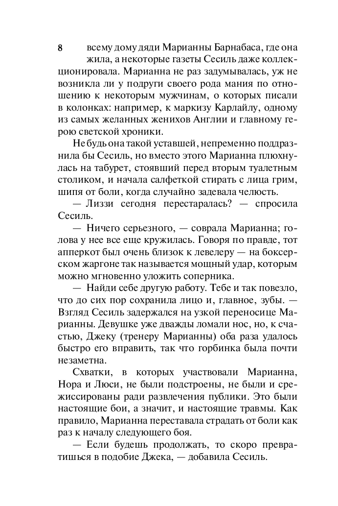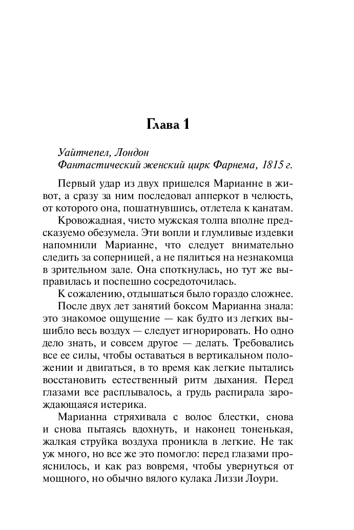 У Марианны Симпсон внешность и манеры утонченной леди, но каждый вечер она выходит на арену странствующего цирка своего дядюшки, и пока еще ни одному сопернику не удалось одолеть девушку в честном боксерском поединке.