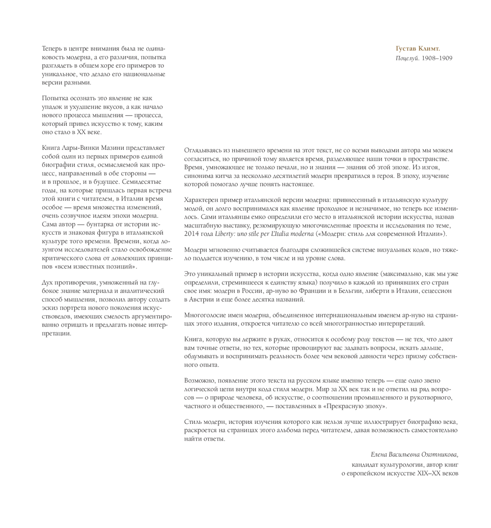 Перед вами фундаментальное исследование ар-нуво – стиля, определившего облик целой эпохи. Этот роскошный альбом проведет вас по всем странам, где рождались шедевры ар-нуво, известного также как югендстиль, сецессион, либерти, модерн... Легендарный итальянский искусствовед Лара-Винка Мазини раскрывает особенности ар-нуво в разных регионах, находит его корни в искусстве предыдущих эпох, рассказывает, как менялось отношение к нему на протяжении ХХ века.