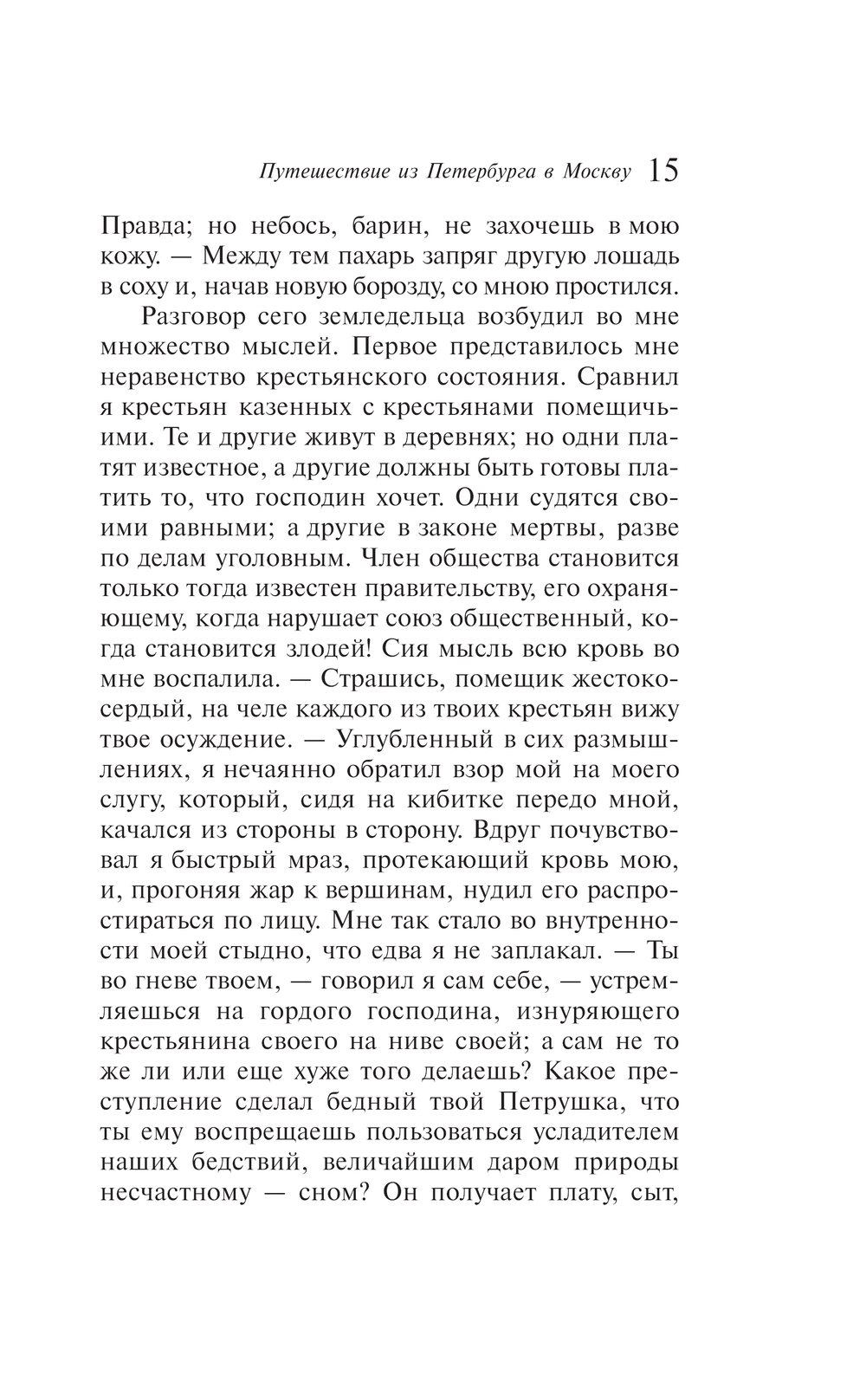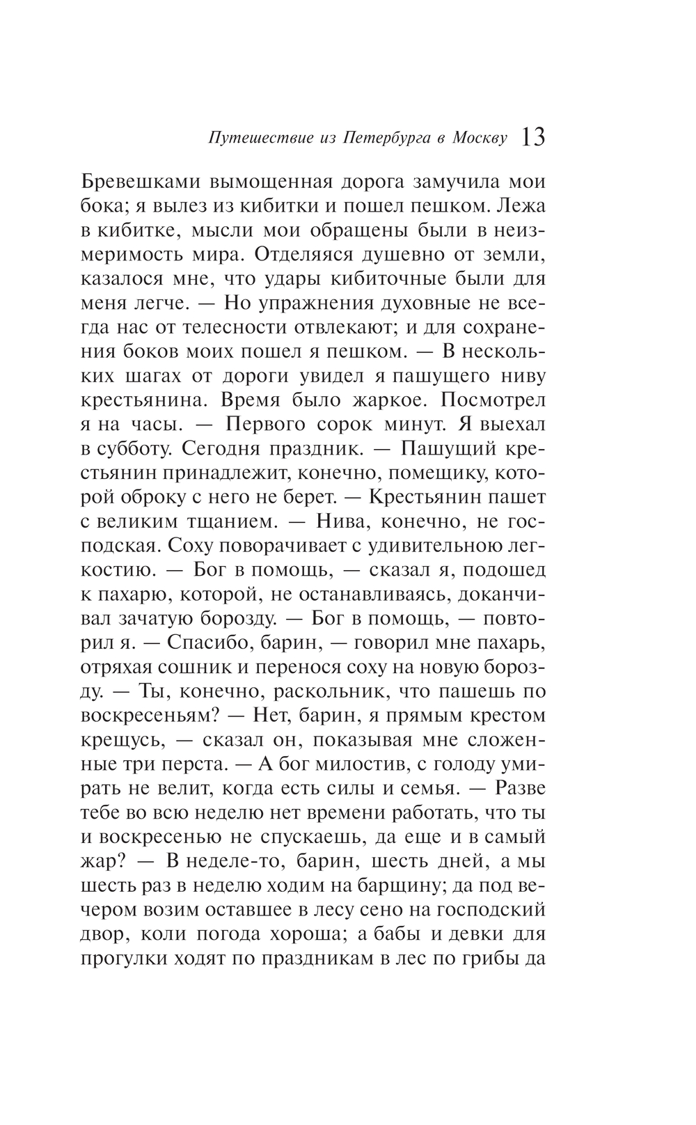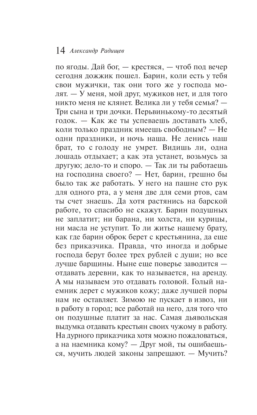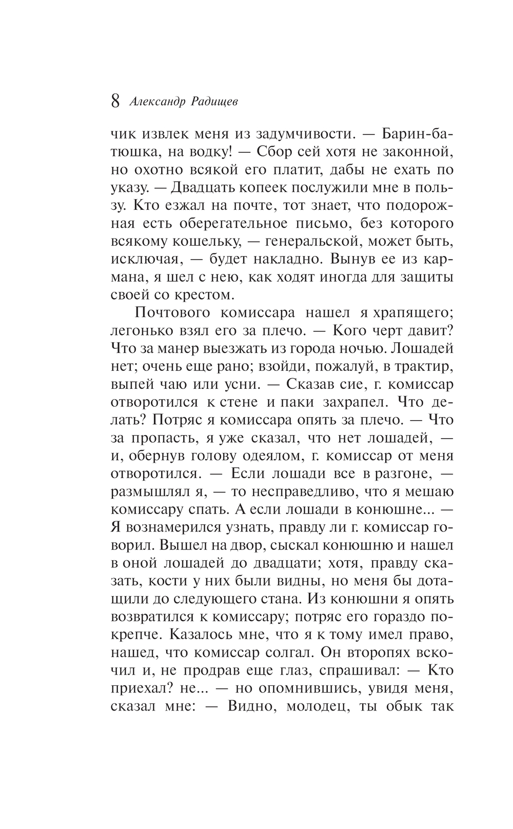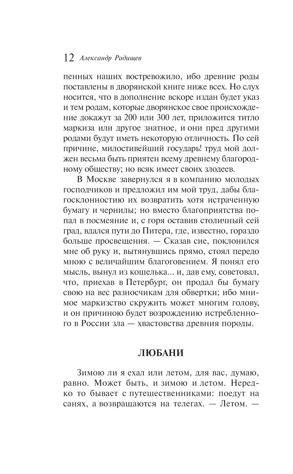 Александр Радищев анонимно напечатал книгу в своей типографии в 1790 году, но после того, как Екатерина II прочитала экземпляр, его арестовали и отправили в ссылку за критику крепостничества и самодержавия.