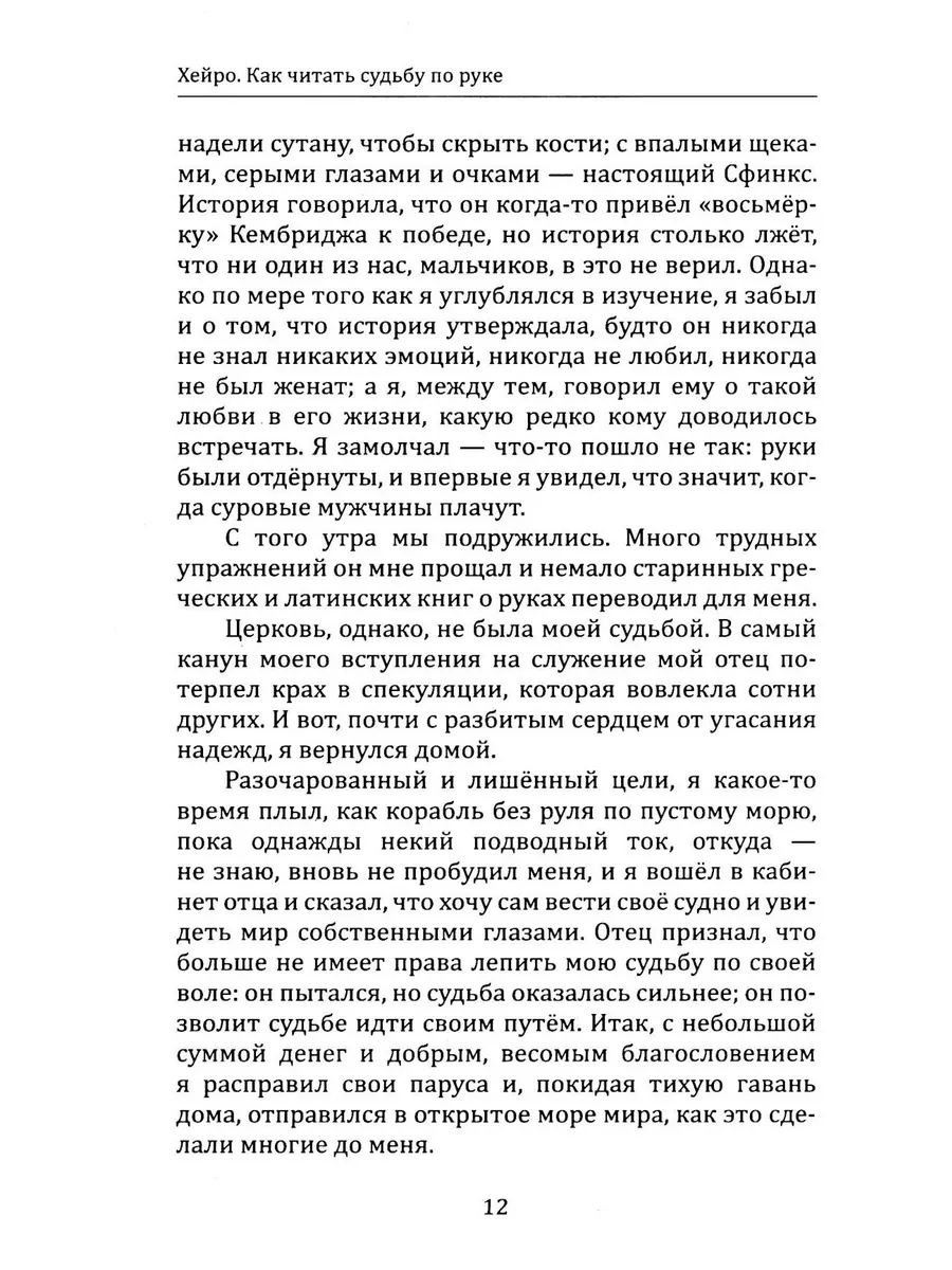 В своей книге автор – Уильям Джон Уорнер, известный под псевдонимом Хейро, делится богатым опытом встреч с представителями политической и интеллектуальной элиты, а также с обычными людьми из разных слоёв общества. На примерах реальных случаев и наблюдений Хейро показывает, как много скрыто в человеческих руках: о чем могут рассказать линии, формы и особенности пальцев и ладоней. Он раскрывает тайны личностных качеств, характера и судьбы, которые можно определить с помощью хиромантии. В книге рассматриваются практические техники чтения рук, советы по их применению и интерпретации, а также психологические аспекты этого древнего искусства.