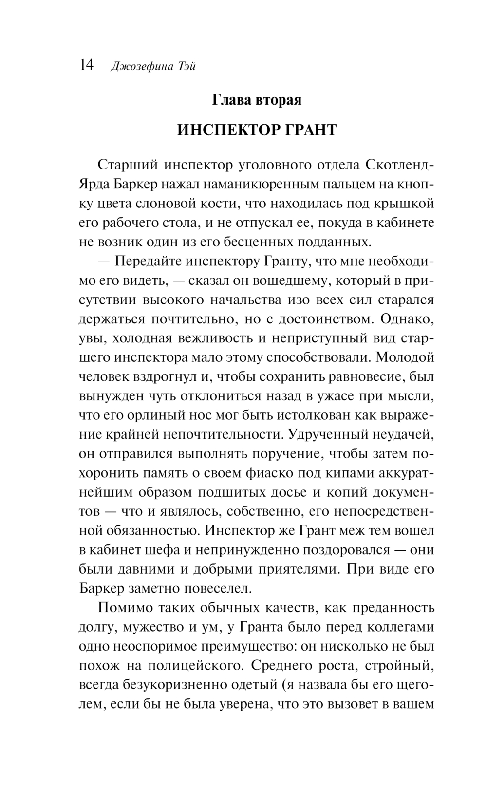 Джозефина Тэй прославилась как мастер психологического детектива: её проза сочетает сдержанную иронию, точную наблюдательность и искренний интерес к человеческим мотивациям. Серия о инспекторе Алане Гранте вывела Тэй в ряд самых остроумных и вдумчивых детективных авторов XX века; её книги читают не только ради загадки, но ради тонкого анализа нравов и судьбы.