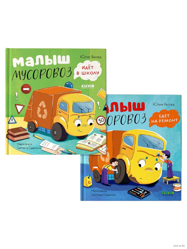 Две книжки для малышей о любимом герое мусоровозе в комплекте – это веселые приключения машинок.