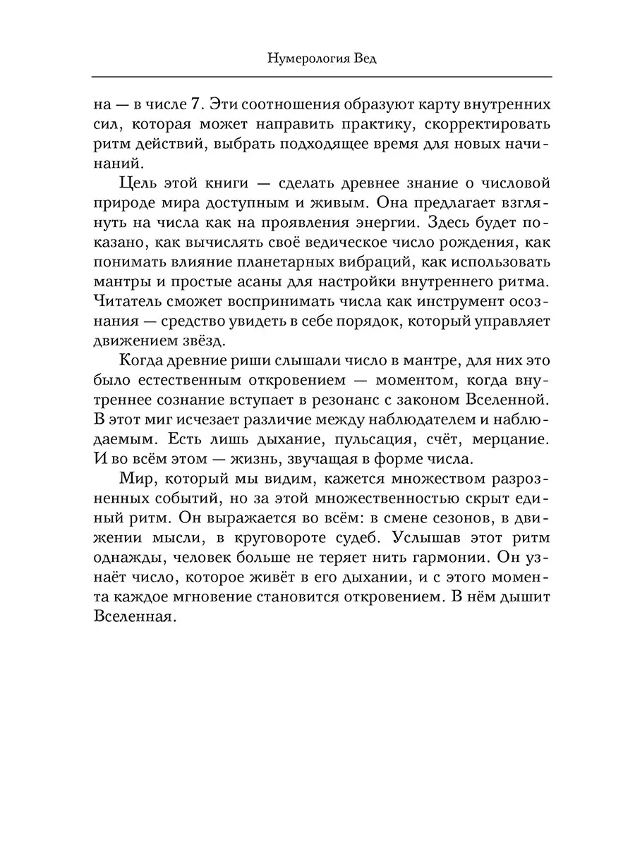 "Нумерология Вед" соединяет ведическую мудрость и лёгкость современного восприятия. Здесь древние божества говорят языком чисел, а простые расчёты превращаются в откровения. Эта книга станет духовным компасом, открывающим законы кармы, судьбы и внутренней вибрации души для любителей индийской философии, йоги, астрологии, для ищущих гармонию и вдохновение.