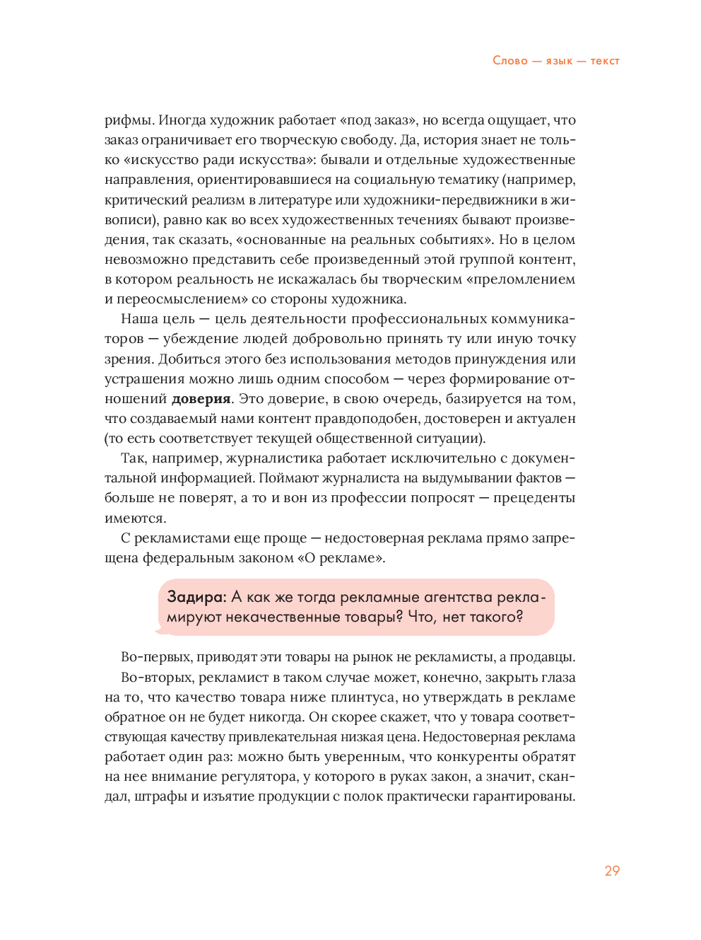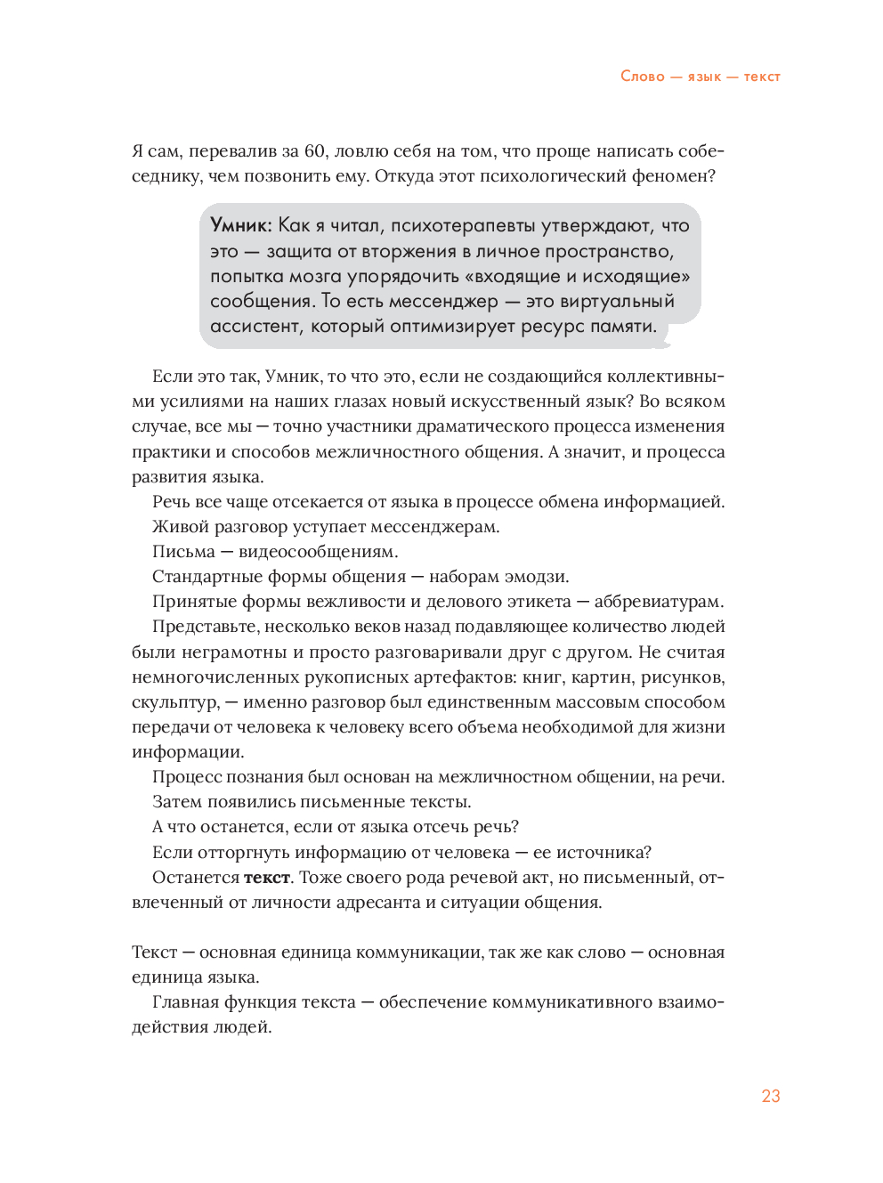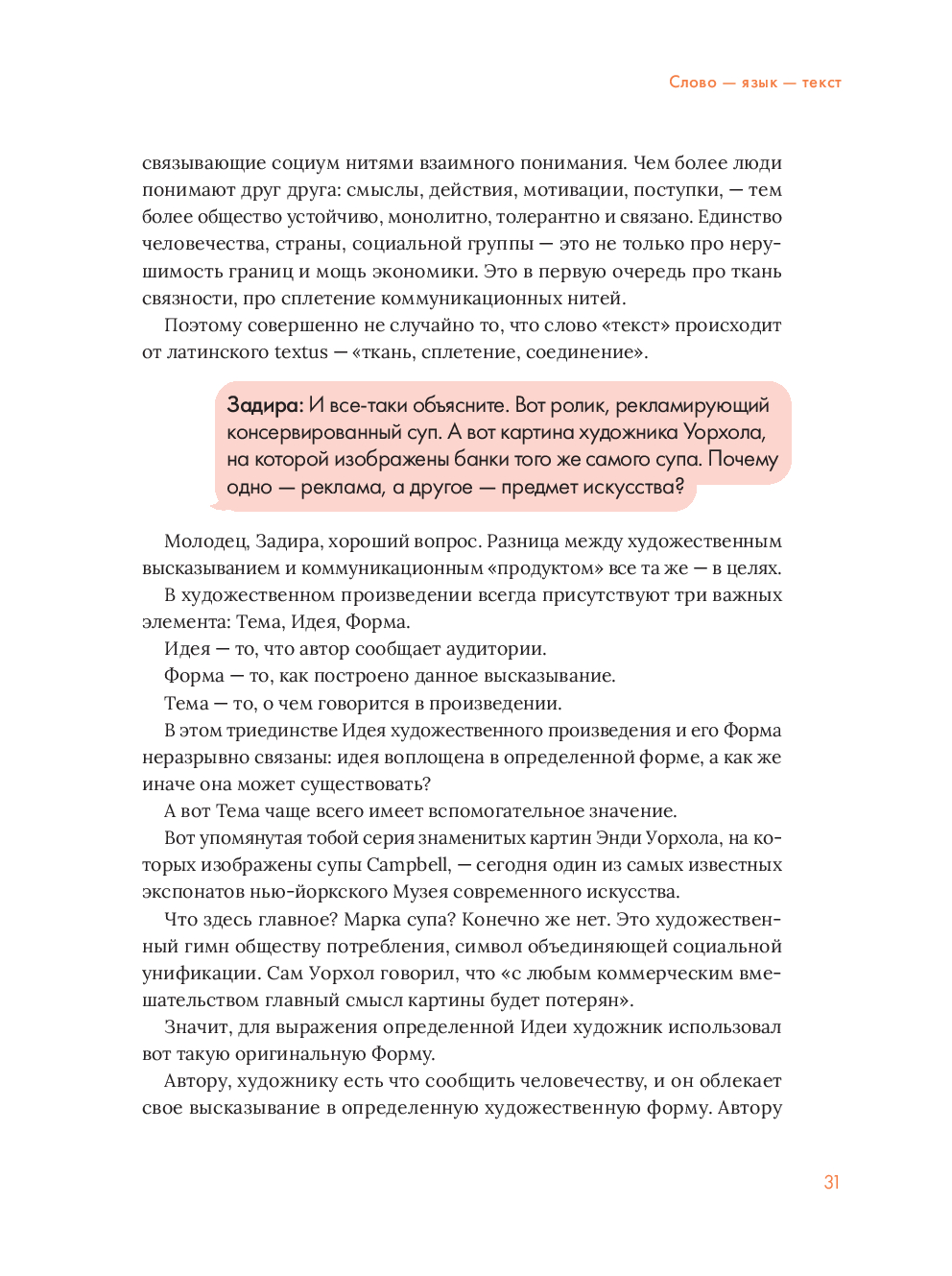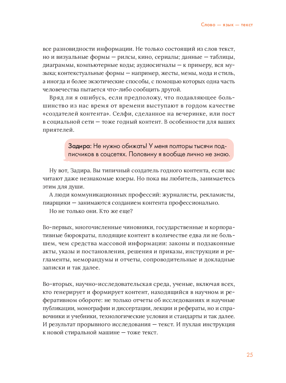 Представьте, что стали свидетелем живой беседы, в которой язвительная девица Задира постоянно троллит начитанного юношу Умника, а опытный практик – автор – терпеливо объясняет обоим, как на самом деле устроены современные коммуникации. Именно так построена книга – через забавные диалоги и реальные примеры вы разберетесь в профессиях, которые сейчас на пике популярности.