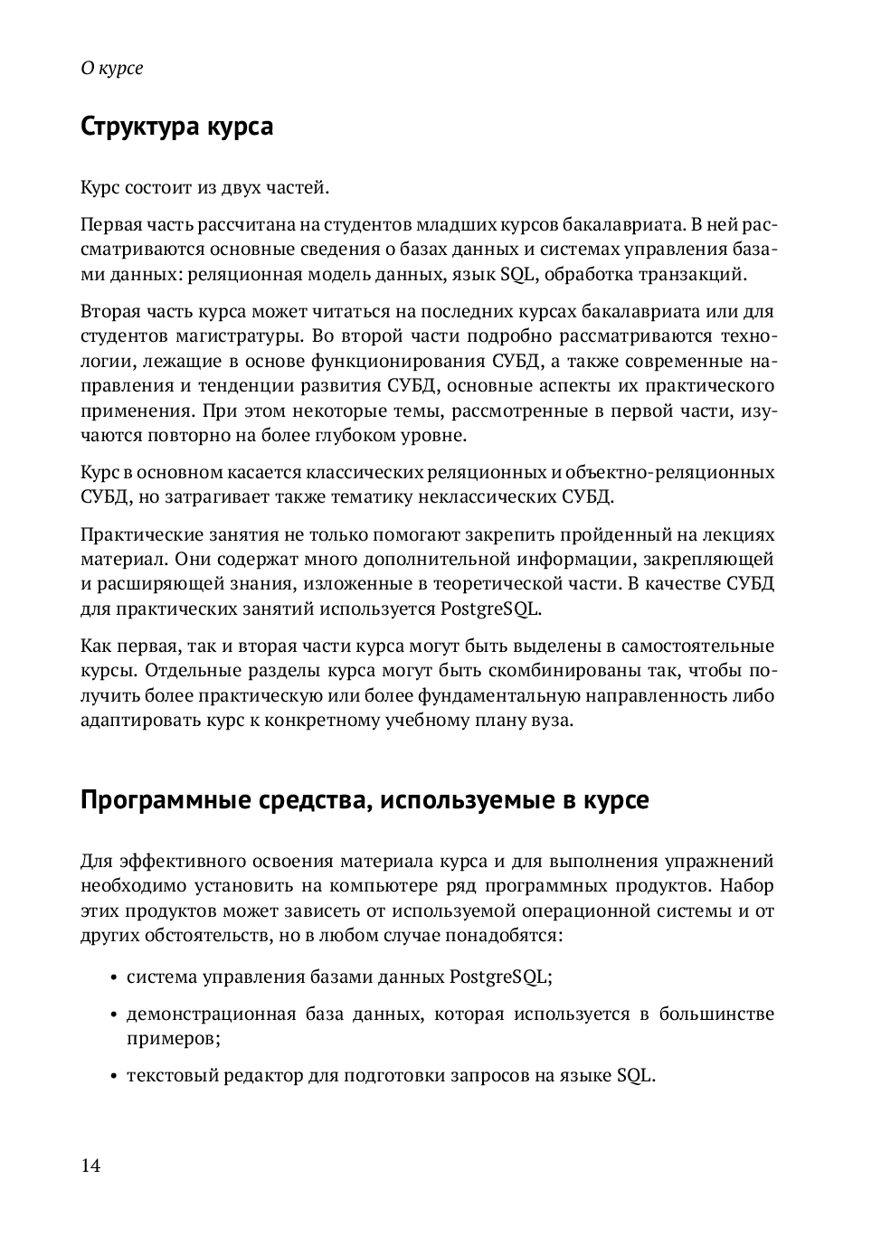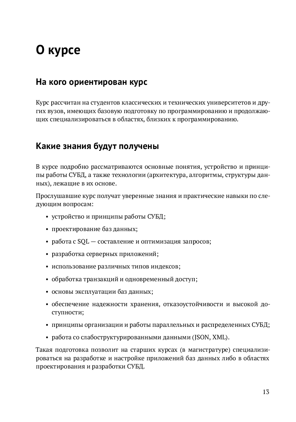 Курс рассчитан на разработчиков данных и СУБД, а также на студентов вузов, имеющих базовую подготовку по программированию.