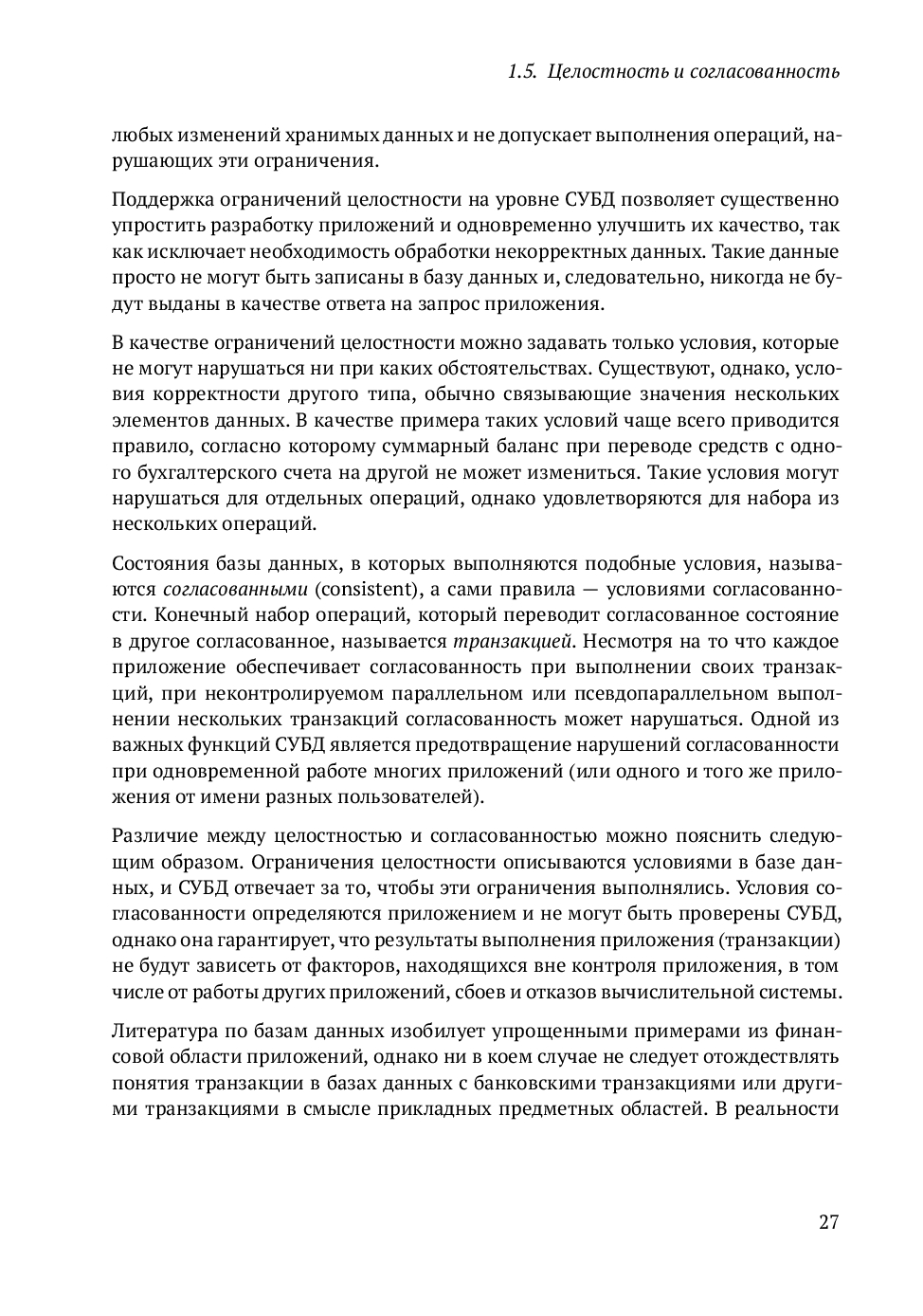 Читатель, изучающий основы технологий баз данных по этой книге, получит не только фундаментальные знания, но и представление и том, как теория реализуется на практике. Все сведения проиллюстрированы на примере высокопроизводительной СУБД с открытым кодом PostgreSQL. Примеры кода используют специально разработанную демонстрационную базу данных. Практические задания к каждой главе помогают закрепить пройденный материал.