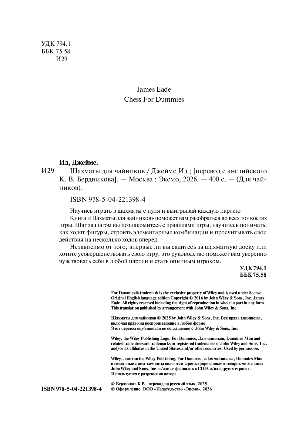 | Название в оригинале | Chess For Dummies |
