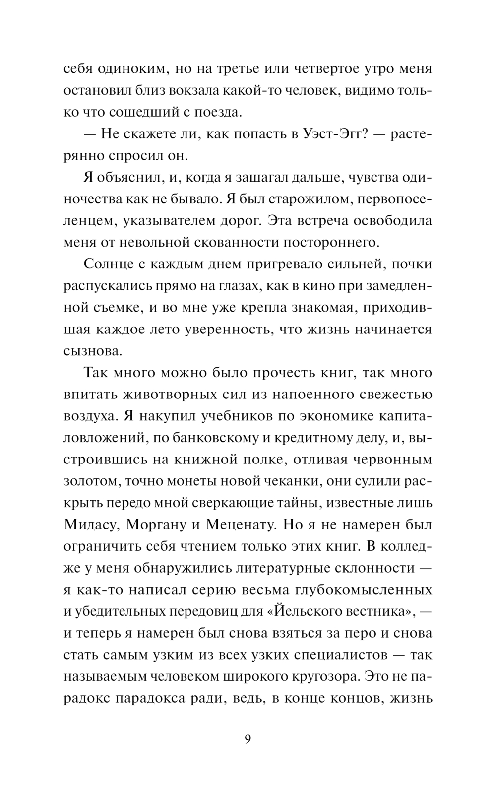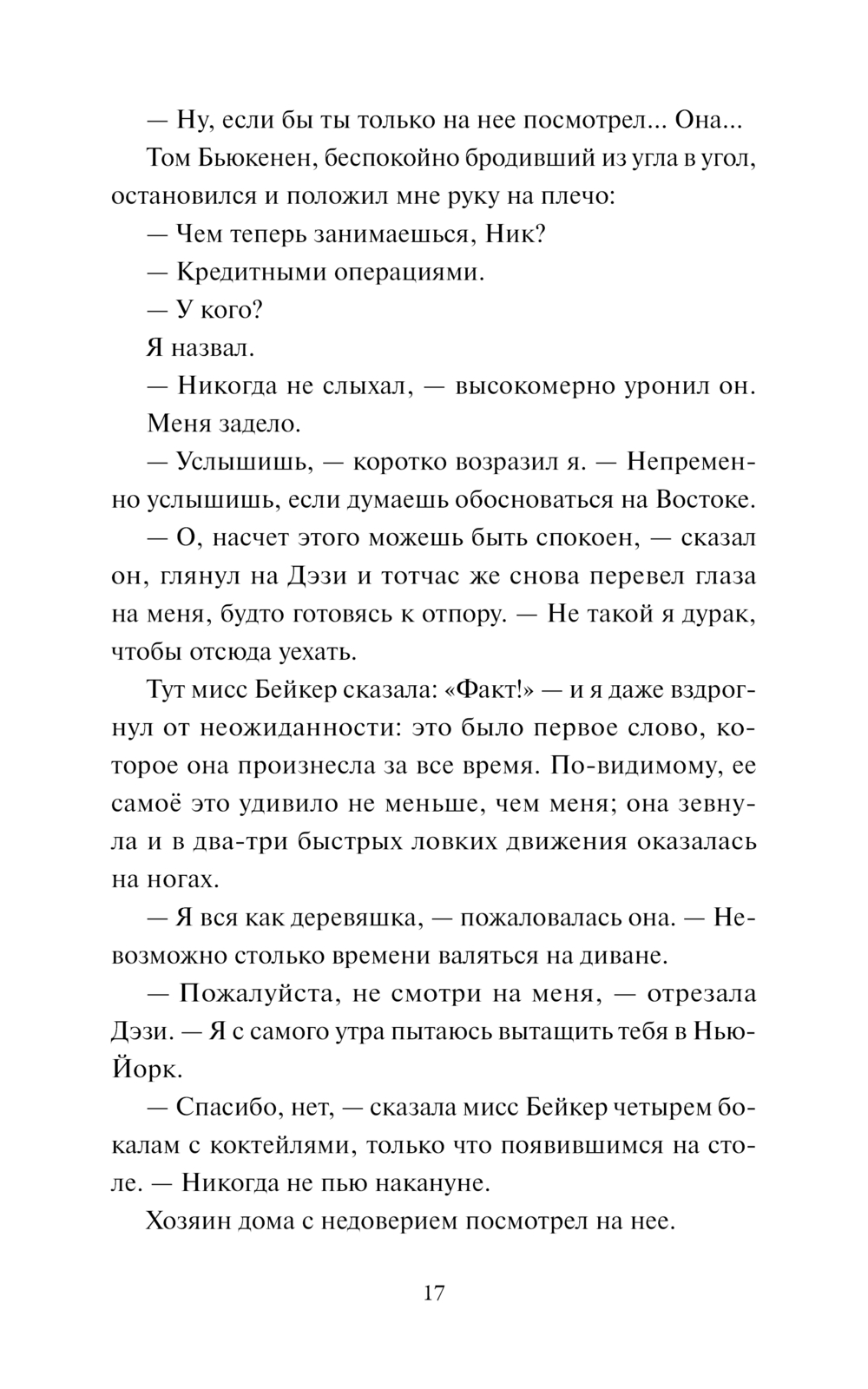 "Были, вероятно, сегодня минуты, когда живая Дэзи в чем-то недотянула до Дэзи его мечтаний, – и дело тут было не в ней, а в огромной жизненной силе созданного им образа. Этот образ был лучше ее, лучше всего на свете... Никакая ощутимая, реальная прелесть не может сравниться с тем, что способен накопить человек в глубинах своей фантазии".