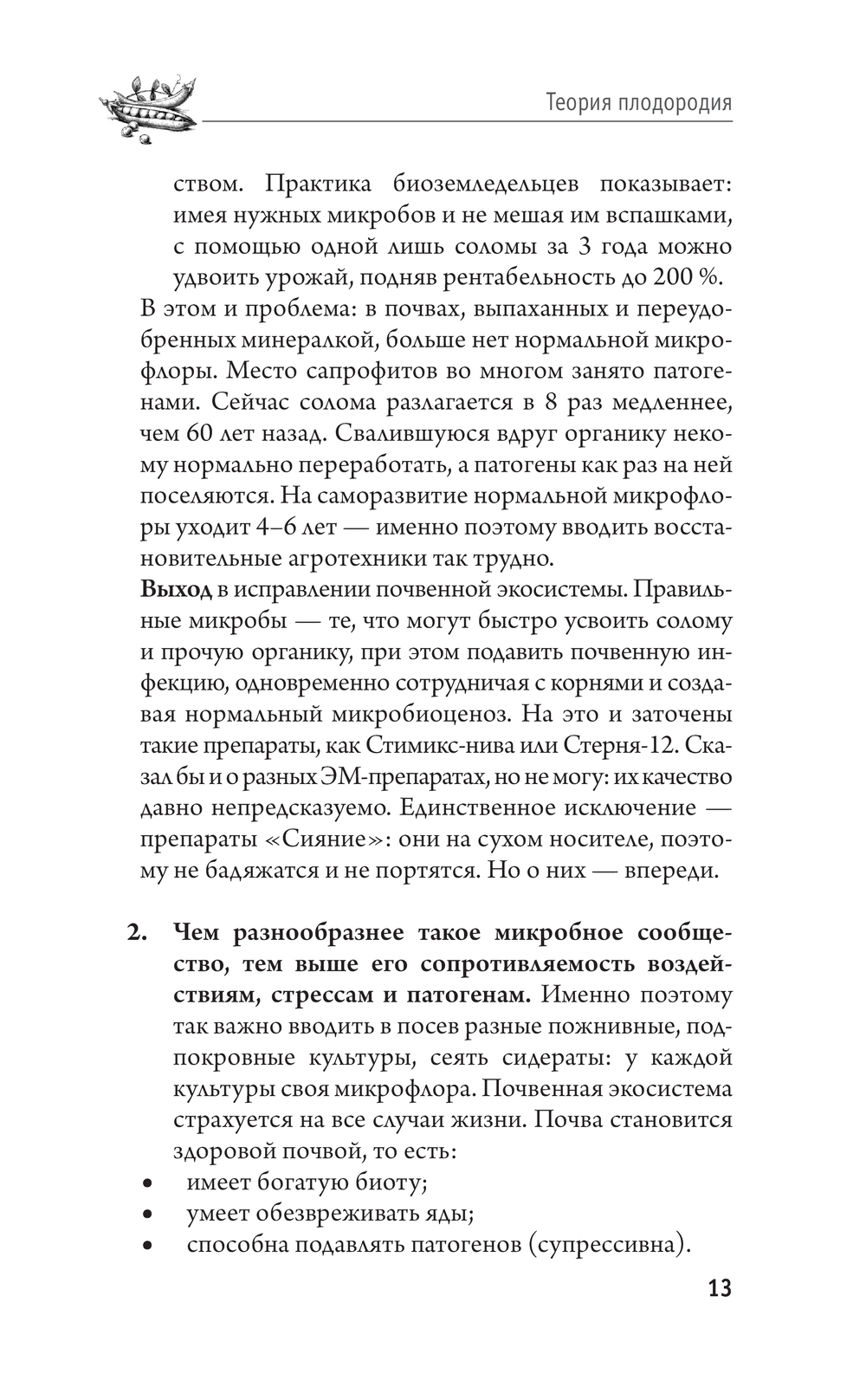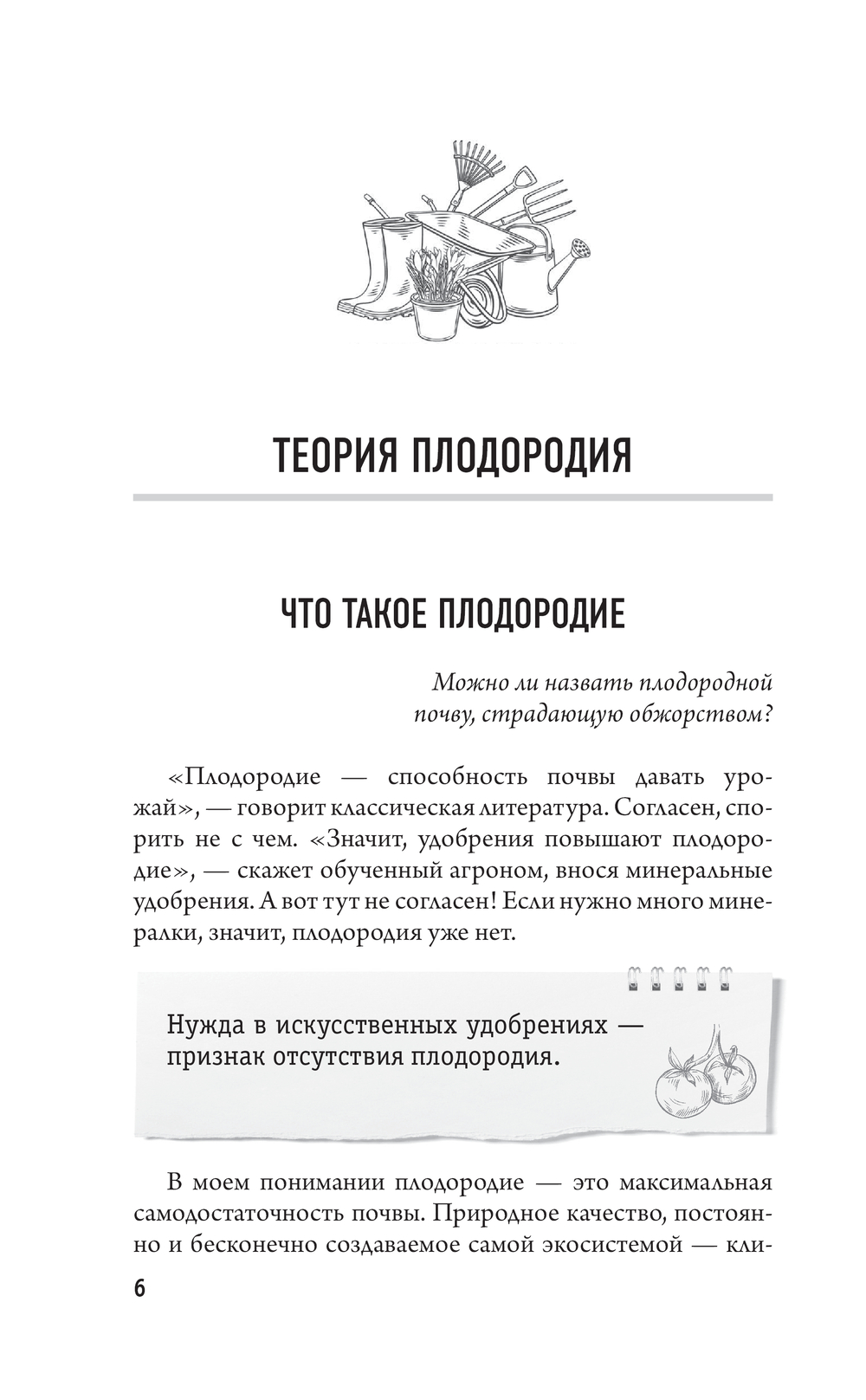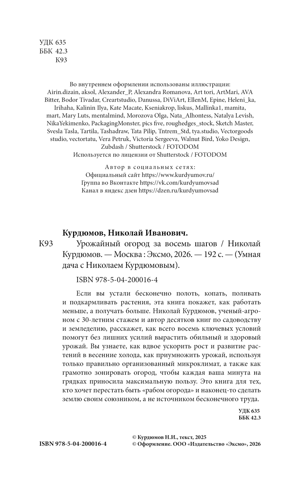Если вы устали бесконечно полоть, копать, поливать и подкармливать растения, эта книга покажет, как работать меньше, а получать больше. Николай Курдюмов, ученый‑агроном с 30‑летним стажем и автор десятков книг по садоводству и земледелию, расскажет, как всего восемь ключевых условий помогут без лишних усилий вырастить обильный и здоровый урожай. Вы узнаете, как вдвое ускорить рост и развитие растений в весенние холода, как приумножить урожай, используя только правильно организованный микроклимат, а также как грамотно зонировать огород, чтобы каждая ваша минута на грядках приносила максимальную пользу. Это книга для тех, кто хочет перестать быть "рабом огорода" и наконец-то сделать землю своим союзником, а не источником бесконечного труда.