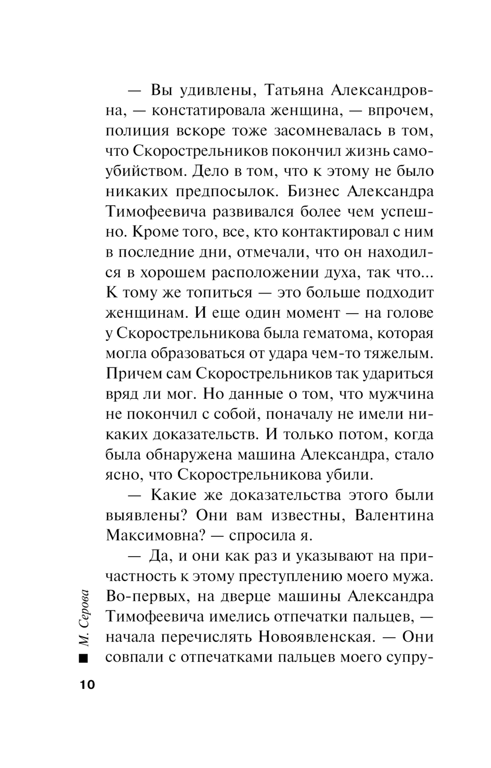 В Вознесенске убит владелец сети автозаправок Александр Скорострельников. Частный детектив Татьяна Иванова берется за расследование. Жена главного подозреваемого Валентина Новостроевская нанимает Татьяну, чтобы доказать невиновность мужа. Все улики – отпечатки пальцев, следы обуви, серебряный фамильный портсигар – указывают на него, но Иванова быстро понимает, что все выглядит как умелая подстава. В ходе расследования детектив знакомится с конкурентами Новостроевского, изучает его прошлое, общается с сотрудниками полиции и посещает место преступления. Постепенно выясняются такие подробности, которые ставят под сомнение все существующие версии...