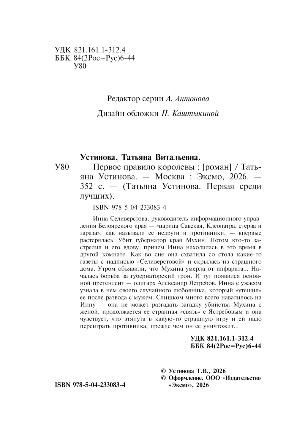 | Серия | Татьяна Устинова. Первая среди лучших |