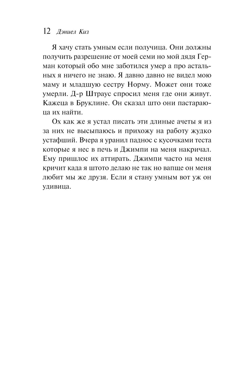 На вопросы, которые поднимали еще Михаил Булгаков в "Собачьем сердце" и Джек Лондон в "Мартине Идене", Дэниел Киз дает в этом романе однозначный ответ.