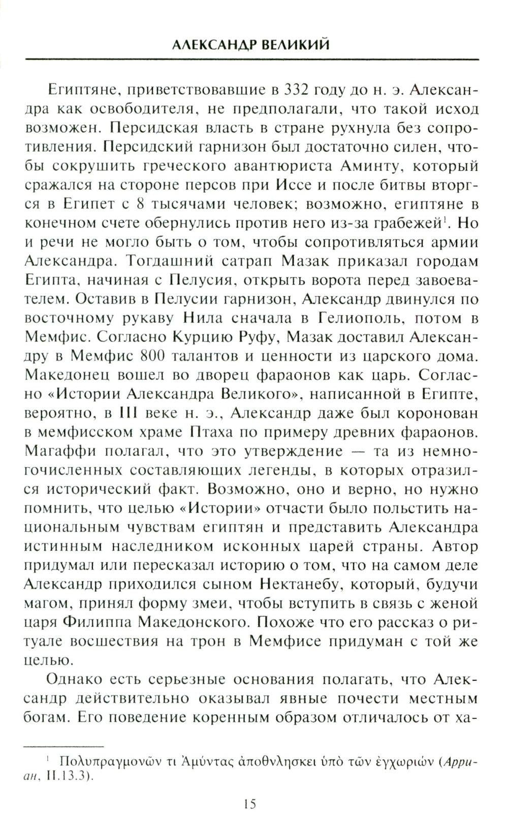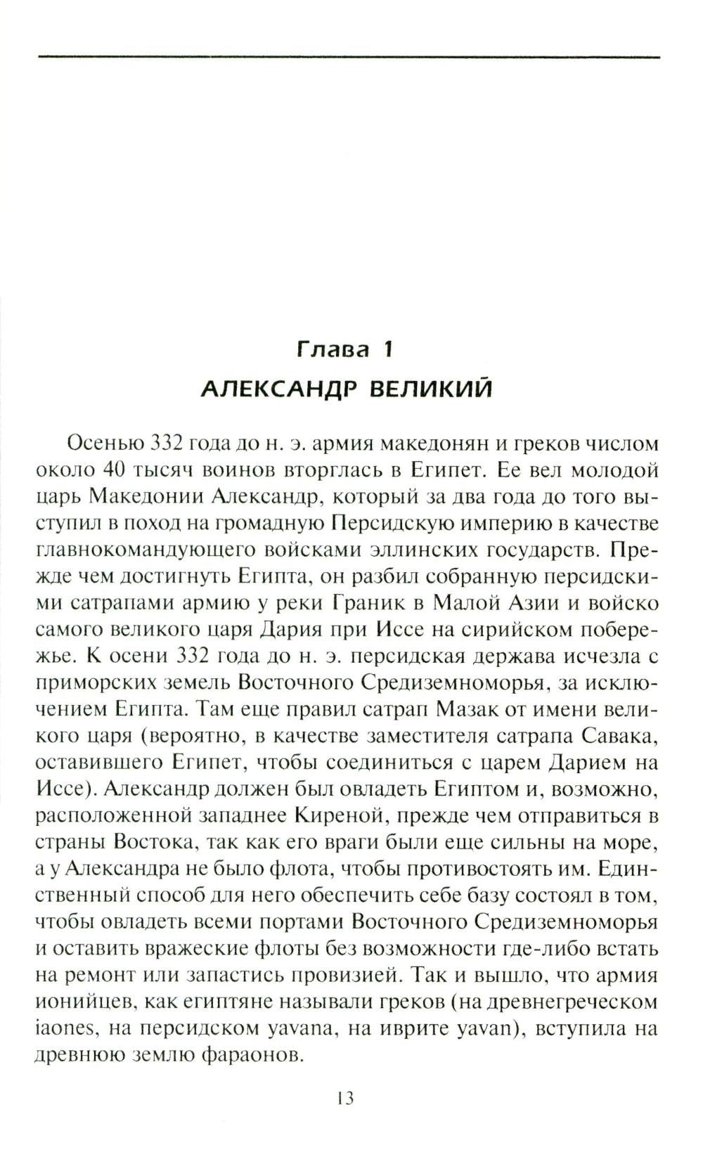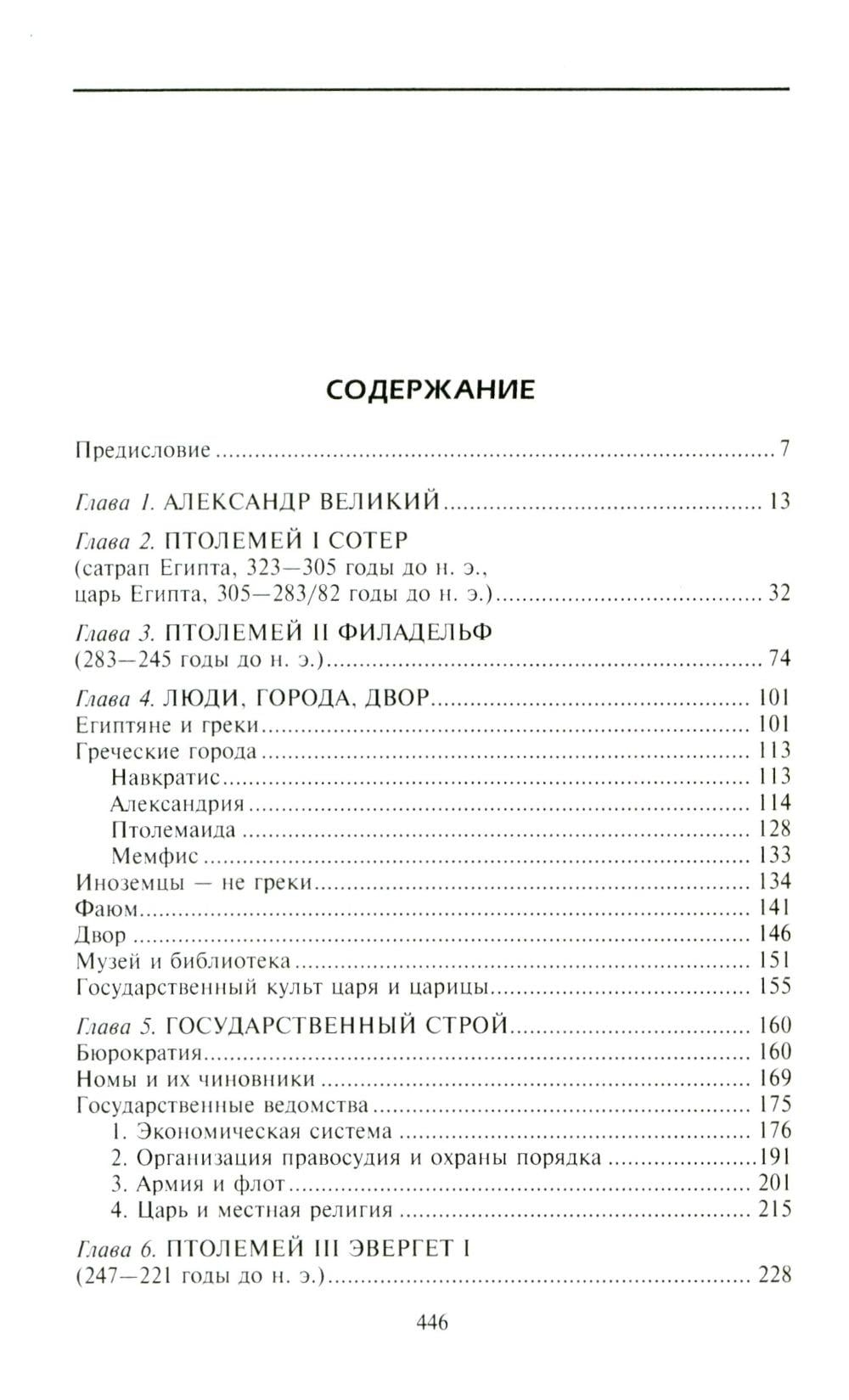 Автор отмечает его культурное и религиозное своеобразие, соблюдая хронологию, анализирует историю царствования династии Птолемеев, события и итоги их правления, характер и личные взаимоотношения, а также место Египта среди других государств и его участие в международной жизни.