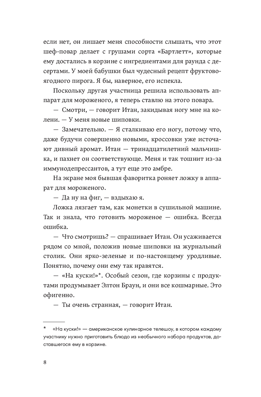 Айви семнадцать, и кухня для нее – крепость. Здесь все под контролем: карточки с рецептами, идеально расставленные баночки со специями и ее безупречные блюда. А вот люди куда менее предсказуемы. У Айви ревматоидный артрит – редкое аутоиммунное заболевание, – поэтому ее мир по большей части ограничивается домом и семьей.