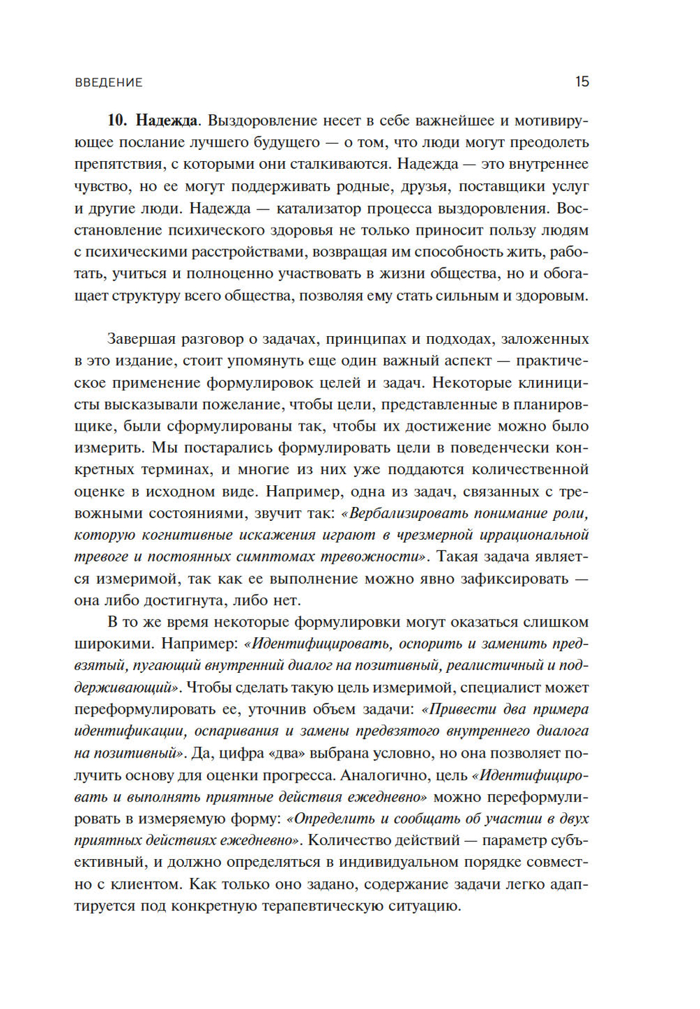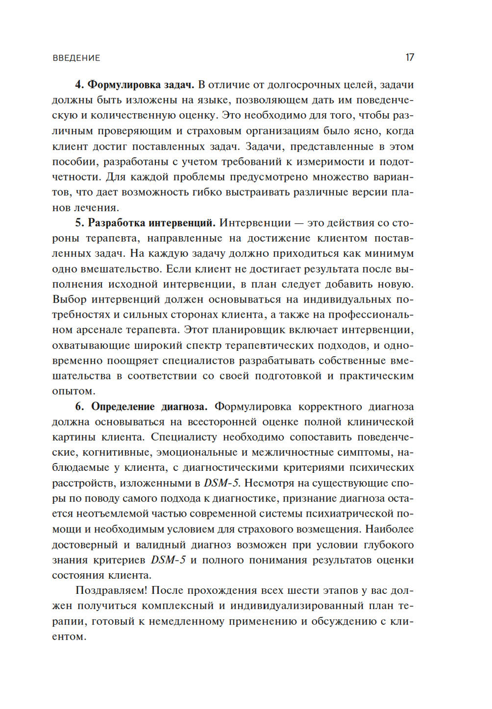 Планировщик предлагает более 3000 четко сформулированных симптомов, долгосрочных и краткосрочных целей лечения, эффективных терапевтических вмешательств для более 40 психологических проблем: от контроля гнева до тревожных расстройств, ПТСР и химических зависимостей. Авторы уделяют особое внимание интеграции современных доказательных подходов в сферу ментального здоровья. Планировщик построен как рабочая тетрадь, которую можно дополнить личным опытом.