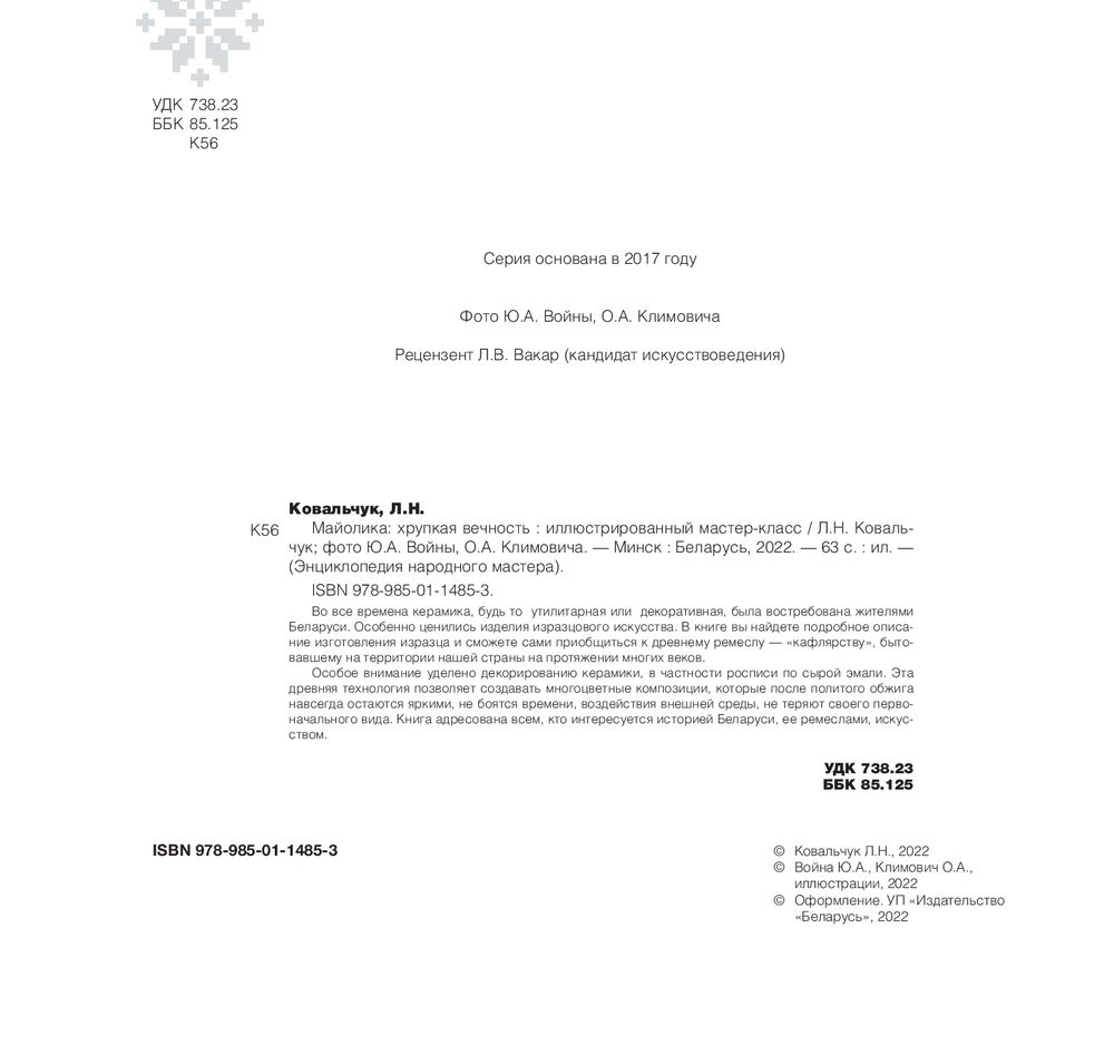 Во все времена керамика, будь то утилитарная или декоративная, была востребована жителями Беларуси. Особенно ценились изделия изразцового искусства. В книге вы найдете подробное описание изготовления изразца и сможете сами приобщиться к древнему ремеслу – "кафлярству", бытовавшему на территории нашей страны на протяжении многих веков.