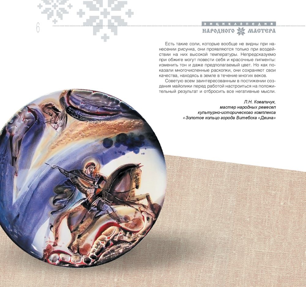Особое внимание уделено декорированию керамики, в частности росписи по сырой эмали. Эта древняя технология позволяет создавать многоцветные композиции, которые после политого обжига навсегда остаются яркими, не боятся времени, воздействия внешней среды, не теряют своего первоначального вида. Книга адресована всем, кто интересуется историей Беларуси, ее ремеслами, искусством.