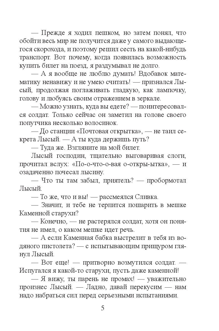 Громадная Каменная старуха стоит на холме, не в силах сдвинуться с места. В ее мешке собраны необыкновенные вещи, с помощью которых можно изменить свою судьбу. Любители приключений пытаются проникнуть в мешок, чтобы завладеть волшебными предметами, и кому-то это удается. Однако приходит день, когда ведьма отрывает свои ноги от холма и начинает поход за украденным. Отважный солдат Сливка проявляет смекалку и выдержку, чтобы противостоять козням Каменной старухи и защитить жителей города.